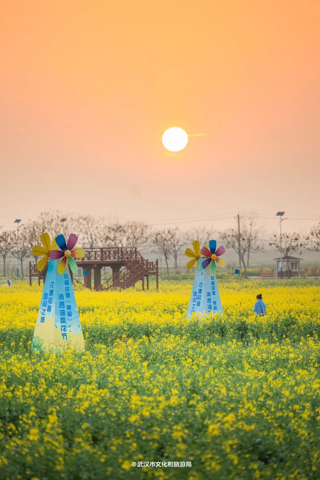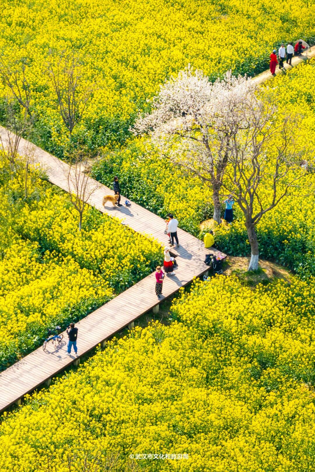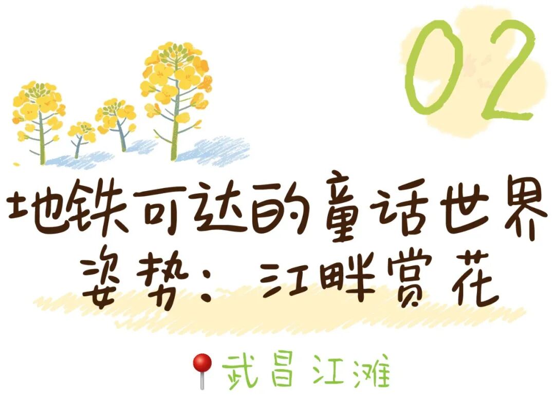 金灿灿的油菜花在阳光下非常耀眼,和武汉的春天非常适配。油菜花花期也比较长,最佳观赏期从下周一直持续到4月初。