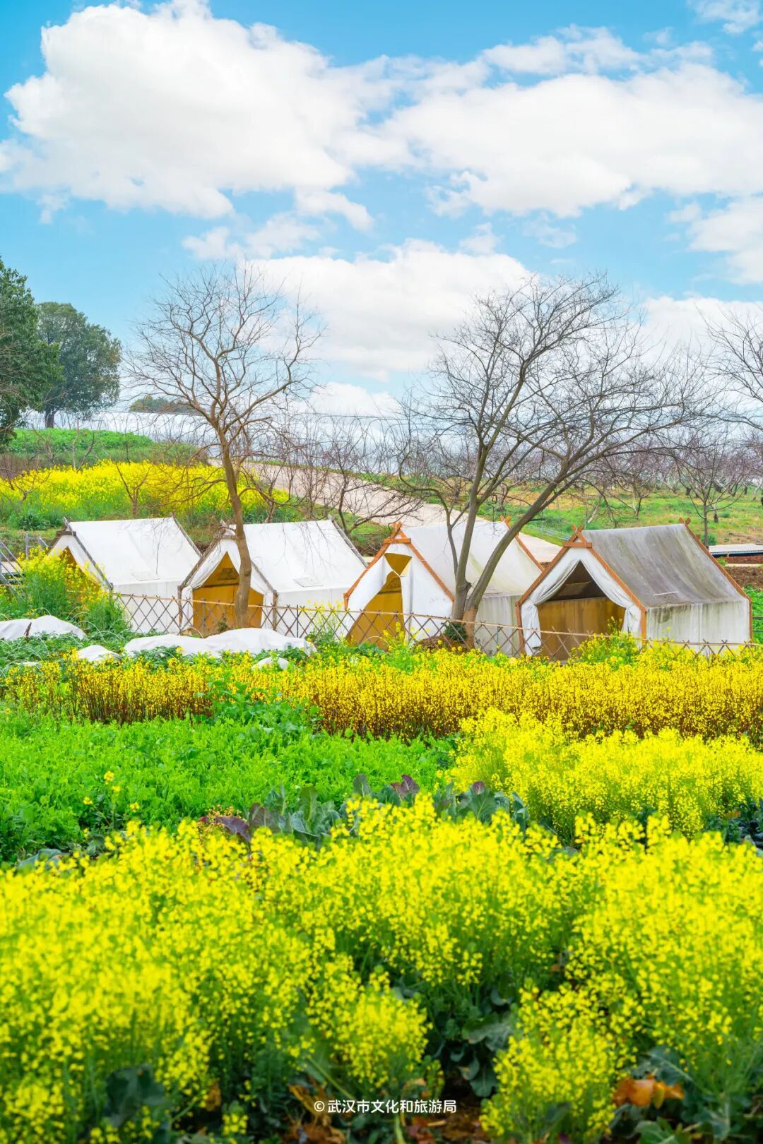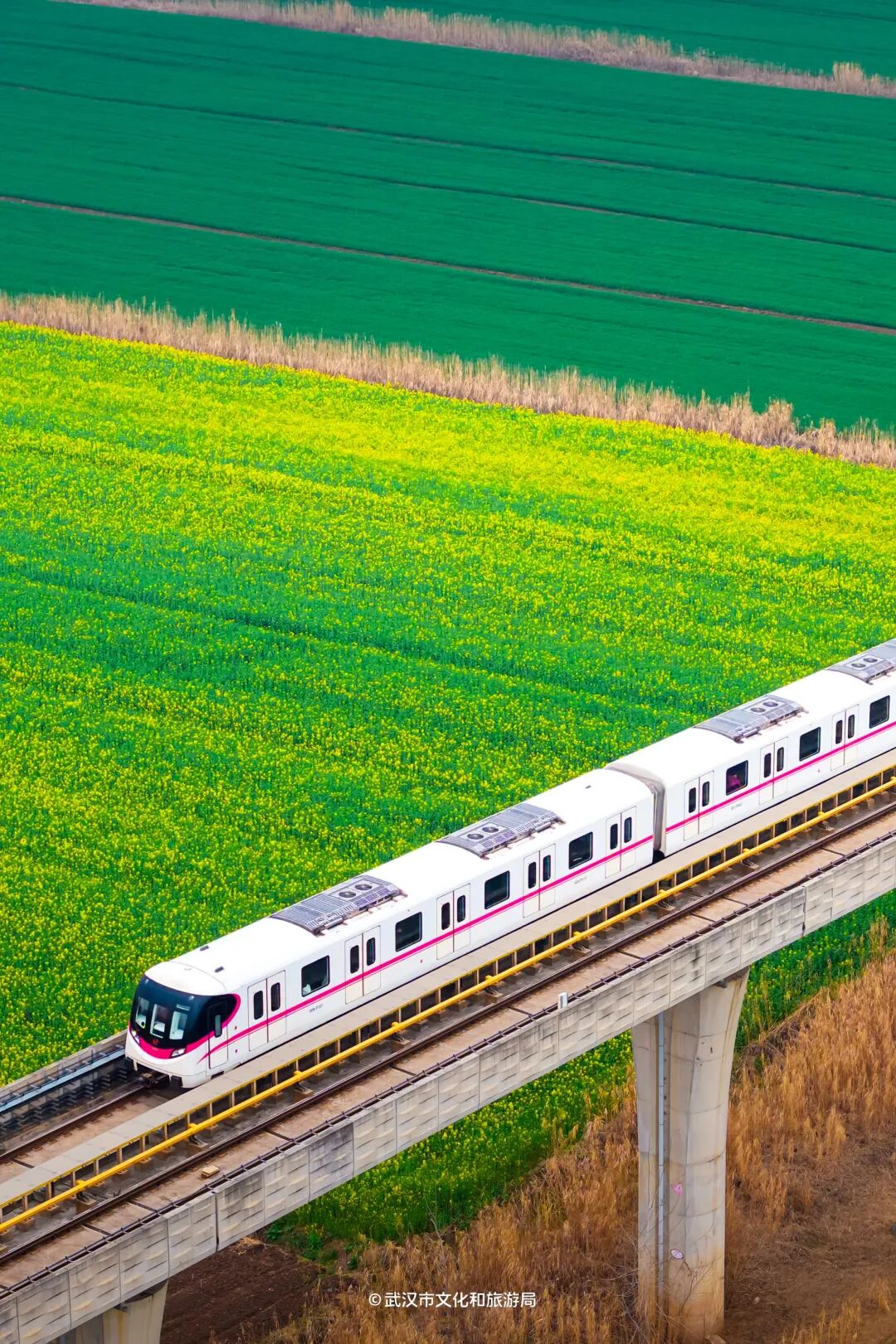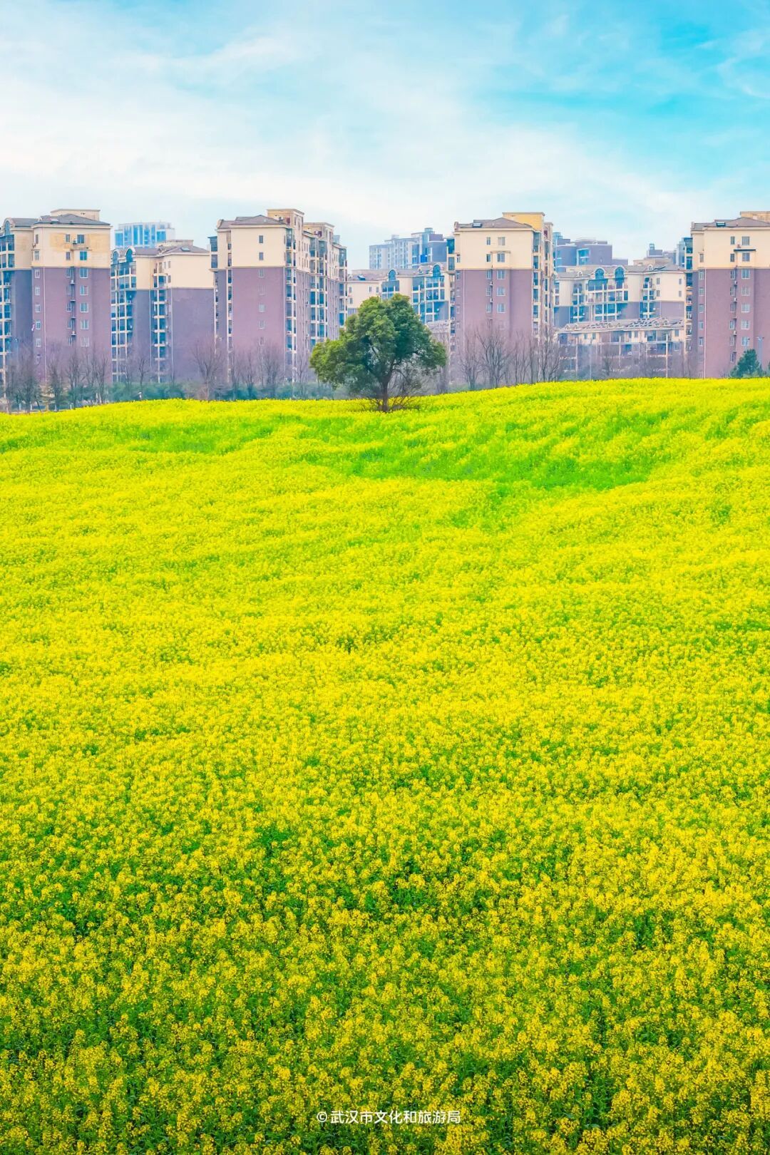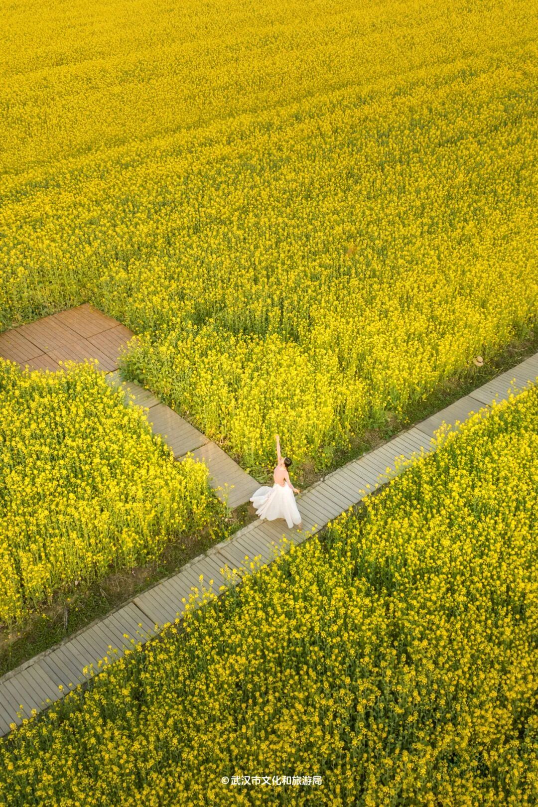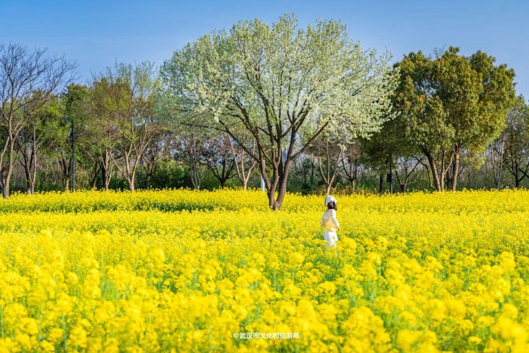 近期乘飞机、坐高铁进出武汉,会发现武汉是黄灿灿的,因为油菜花开啦!