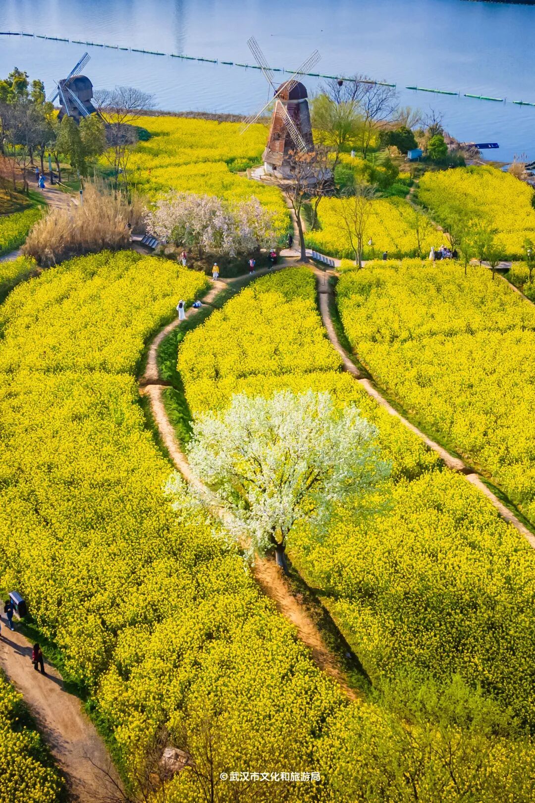 武汉油菜种植面积多达60万亩,足以铺满12个东湖,盛花期十分壮观。