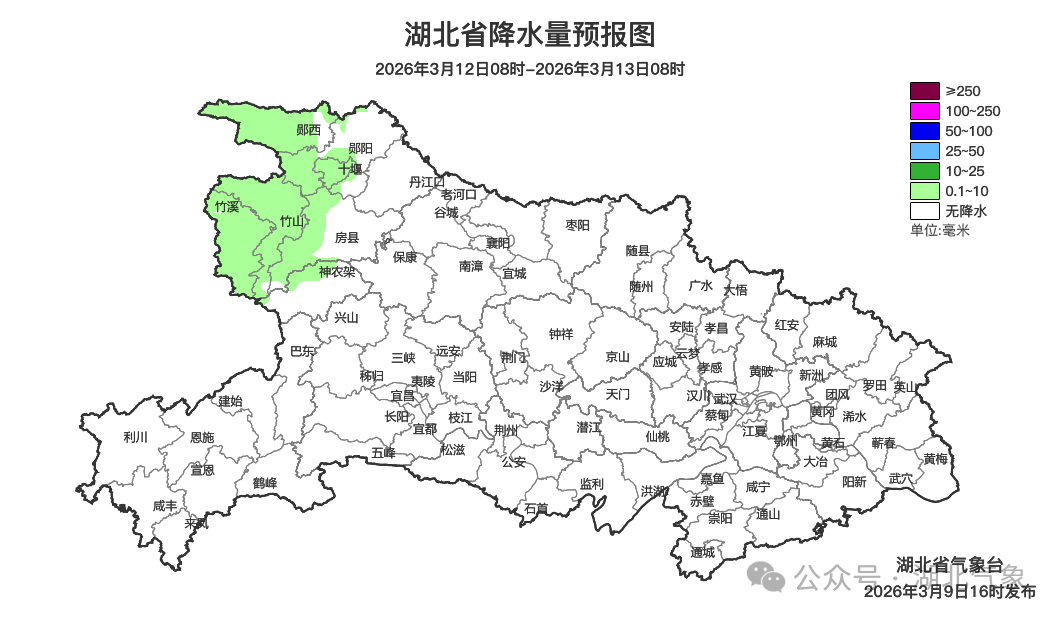 3月12日08时-13日08时,鄂西北西部多云,局地有零星小雨;其他地区晴天到多云。最高气温鄂西北15~18℃、其他地区18~22℃,最低气温3~9℃,偏北风3级、阵风4到6级。