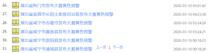 今天,据湖北省气象局网站消息,截至今日7时30分,湖北连发31条大雾预警,涉武汉、黄石、襄阳、咸宁、恩施等地。
