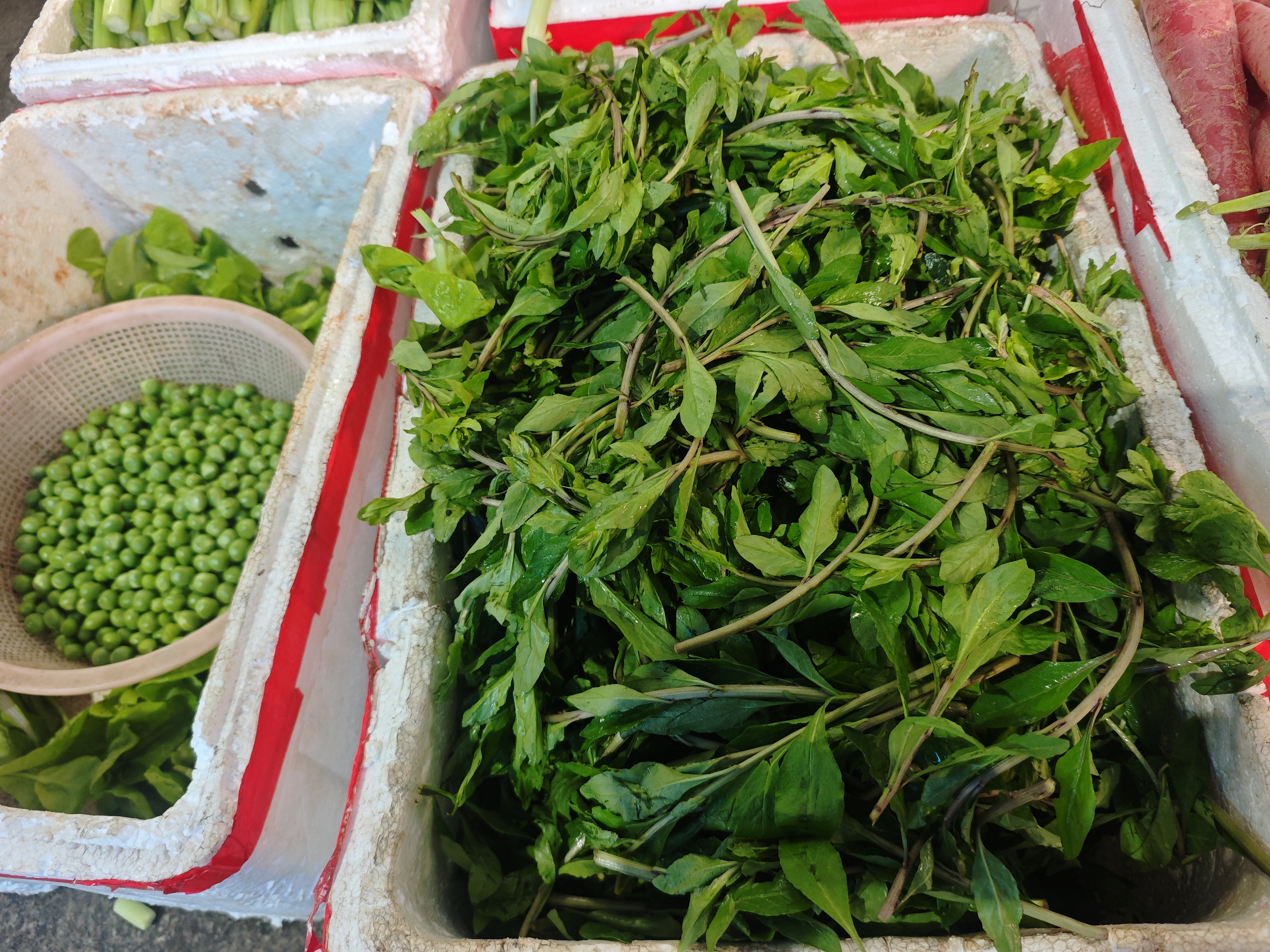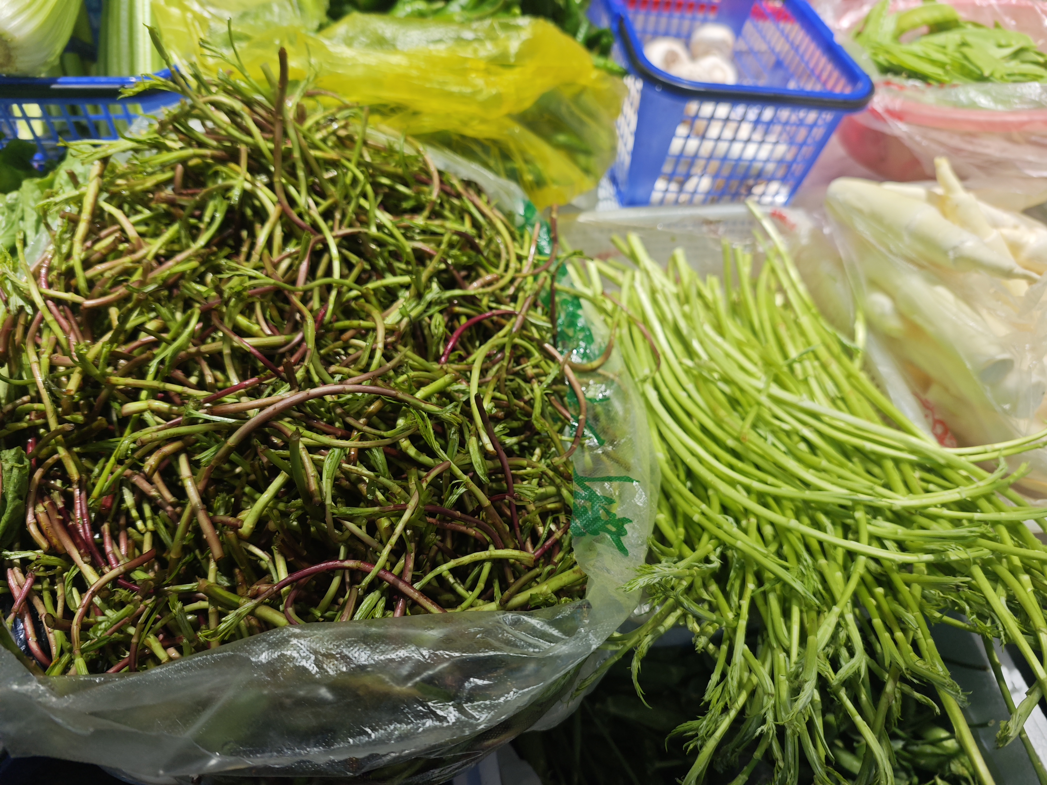 据商户罗前明介绍,目前正是品尝春菜的好时节:“现在有本地的新鲜蒜薹、春天的野芹菜、枸杞尖子、豌豆尖,还有刚上市的汉菜、空心菜。菜苔子快下架了。” 对于市民关心的蚕豆,商户表示:“刚上市的是外地的,本地的还要再等一个多月。”