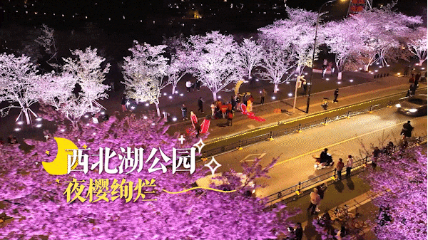 ⊙西北湖绿化广场夜樱(资料图)