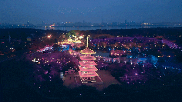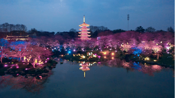 ⊙东湖樱花园夜樱(资料图)