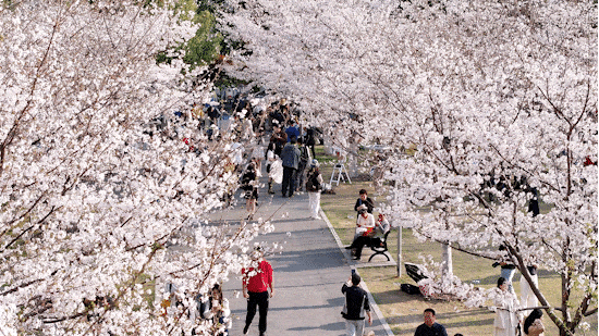 盛花之后,樱花会逐渐进入飘落期。微风吹过时,花瓣纷纷落下,形成浪漫的“樱花雨”景观,也是很多游客喜欢的赏樱体验。
