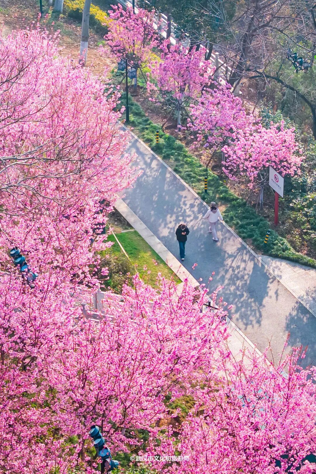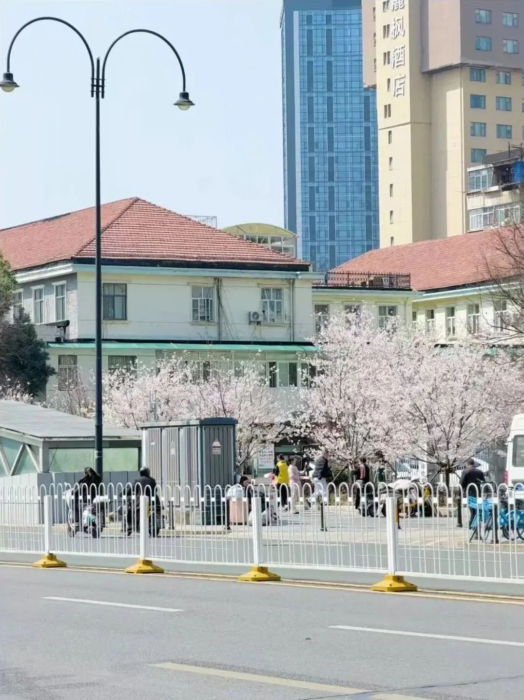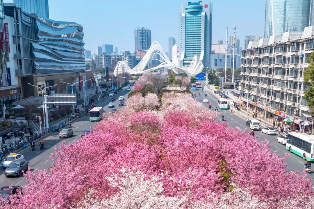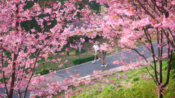 友情提示:樱花树种在绿化带内,只适合远观打卡。为了您的生命安全,不要横穿马路、踩踏绿地。