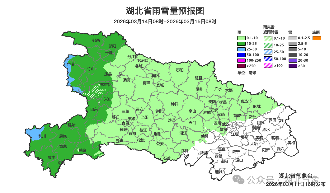 预报来源:湖北省气象台2026年3月11日16时预报