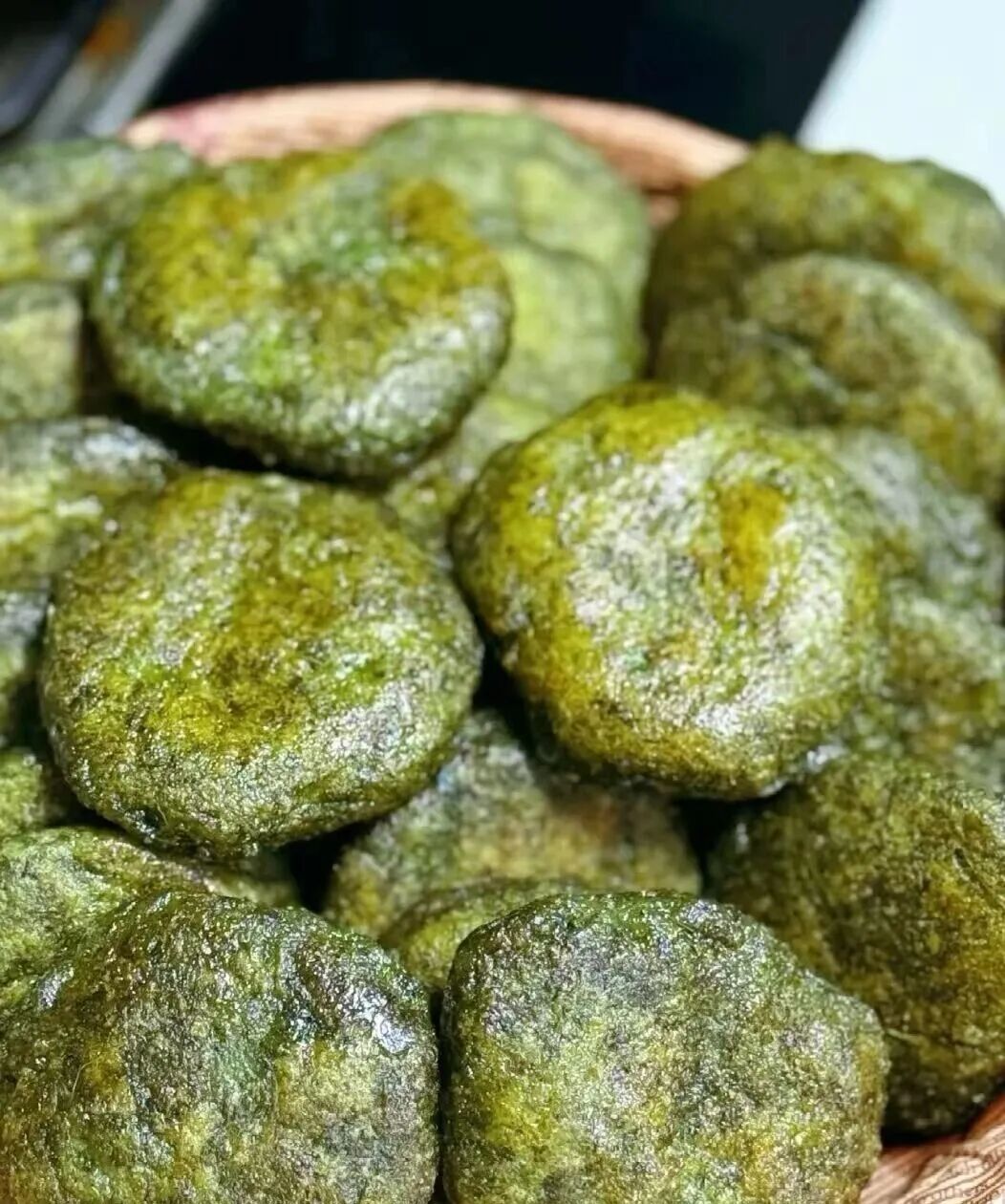 黄冈软萩粑采用同样的鼠曲草,做出不同风味。嫩叶洗净捣碎后与糯米粉揉成浅绿色面团,包入黑芝麻糖馅或腊肉炒豆干,压成圆饼。微火烙制则外皮酥脆、内里软糯;上笼蒸熟则清香扑鼻、甜而不腻。
