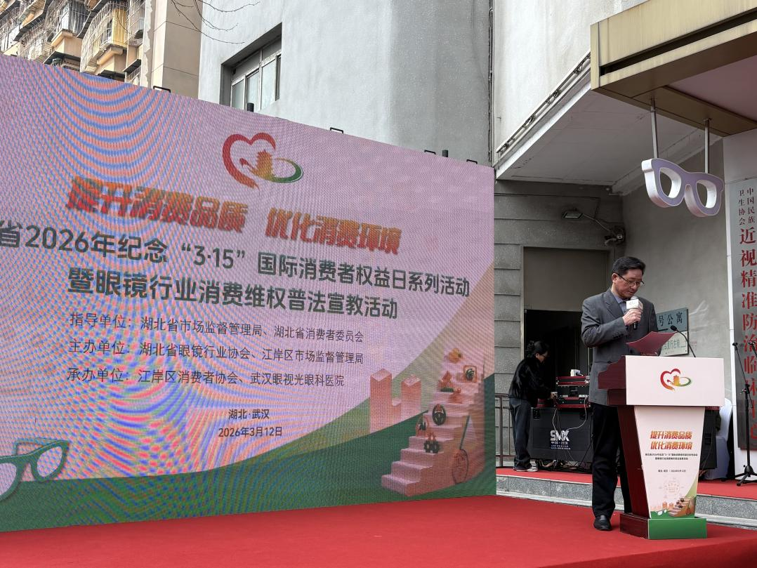 3月12日,“提升消费品质、优化消费环境”湖北省2026年纪念“3·15”国际消费者权益日系列活动暨眼镜行业消费维权普法宣教活动在武汉举行。长江云新闻记者从活动现场获悉,《眼镜验配企业诚信经营服务规范》(DB42/T 2529—2026)将于今年4月13日正式实施。该标准为湖北省地方标准,适用于湖北省行政区域内眼镜验配企业的验光、配镜、销售、售后等诚信经营活动。