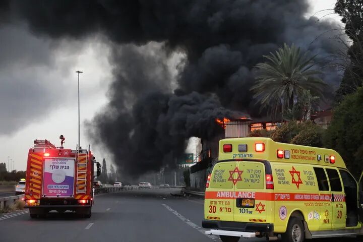 3月13日,在以色列中部城市霍隆,遭伊朗导弹袭击的一处地点冒出滚滚浓烟。新华社发(吉德翁·马科维奇摄/基尼图片社)