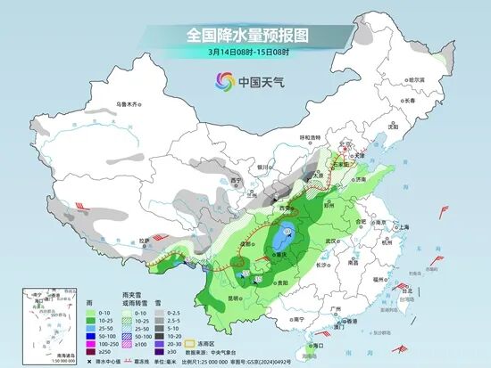 3月14日08时-15日08时,鄂西北、鄂西南阴天有小到中雨,局地大雨,其中鄂西北高海拔地区有雨夹雪或雪;鄂东北、江汉平原多云转小雨;其他地区晴天转多云。最高气温鄂西北13~18℃、其他地区19~24℃,最低气温6~11℃,偏北风2到3级转3到4级、阵风5到7级。