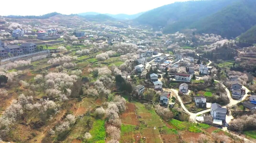 樱桃花如云似雪,漫山遍野铺就素白春装