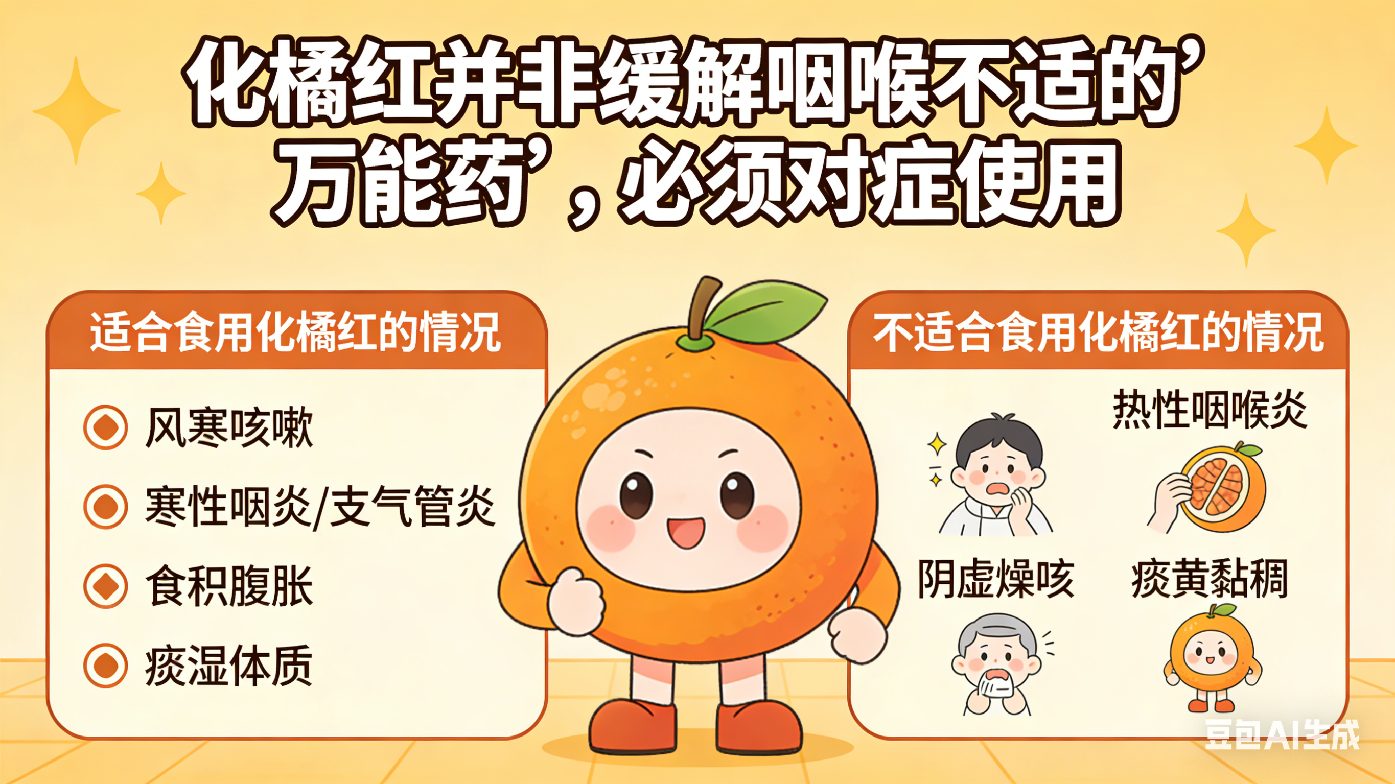 浙江省立同德医院中医内科主任周天梅提醒,化橘红并非缓解咽喉不适的“万能药”,必须对症使用。