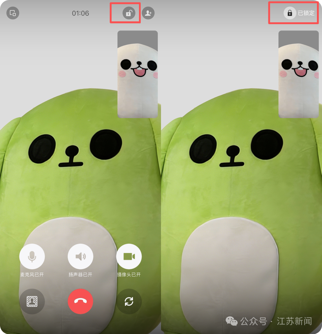 3.不掉线的锁:有些人视频聊着聊着就没了,可能是误触点了挂断。现在微信视频能锁定屏幕了。微信视频时点击右上角锁定图标,即可锁定屏幕。