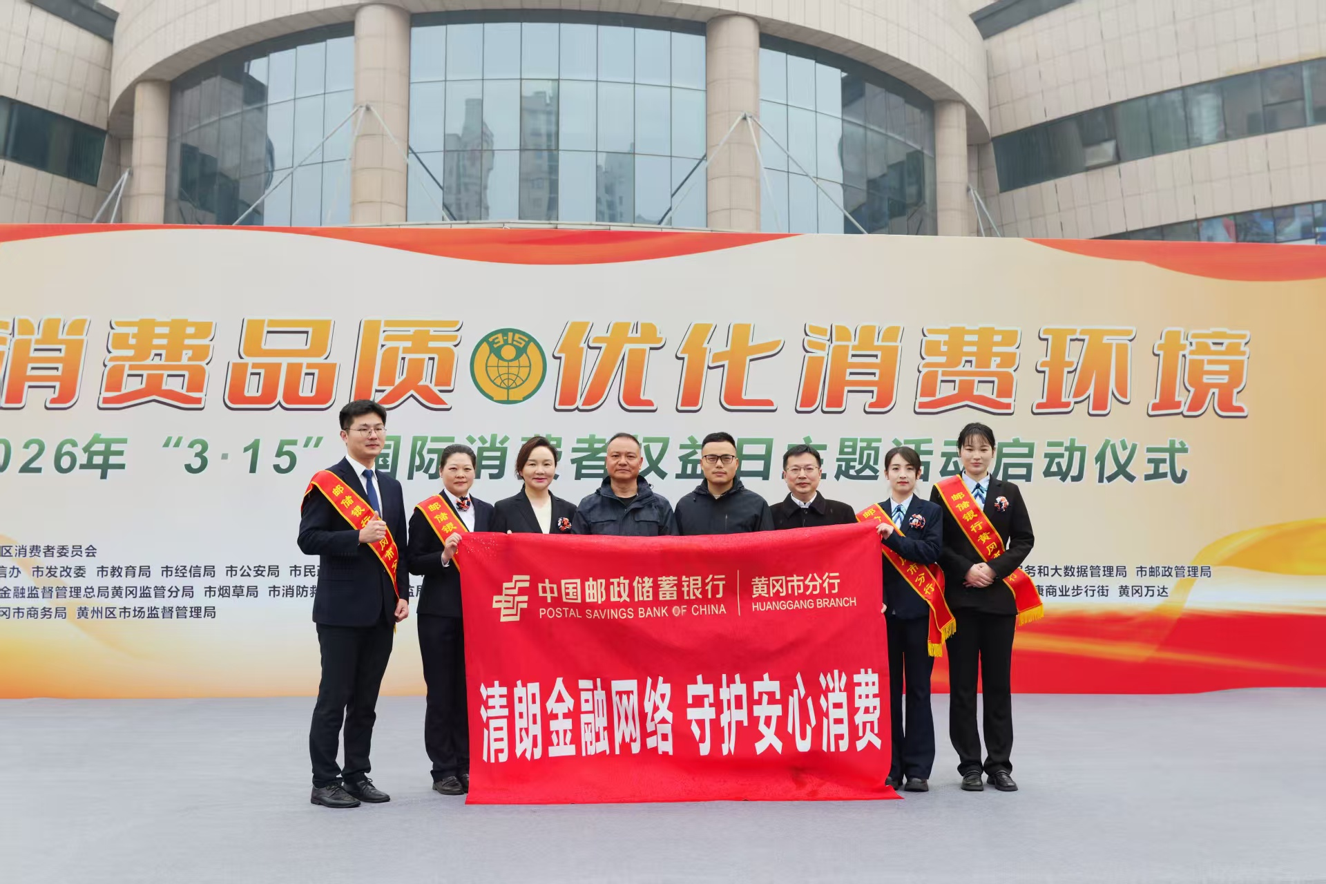 3月15日,邮储银行黄冈市分行以“清朗金融网络 守护安心消费”为主题,在国家金融监督管理总局黄冈监管分局的组织下,联合市场监管、司法、商务、消协等多部门,在黄冈黄梅戏大剧院广场举办“3·15”金融宣传活动。