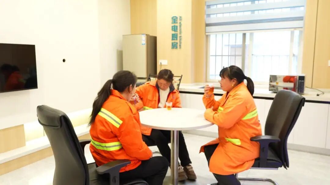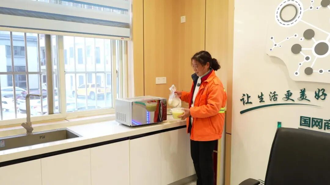“我上班的地方远,中午都是自己带饭,等到饭点就凉了。现在有了微波炉,热饭方便多了。”环卫工人肖伍芝笑着说。