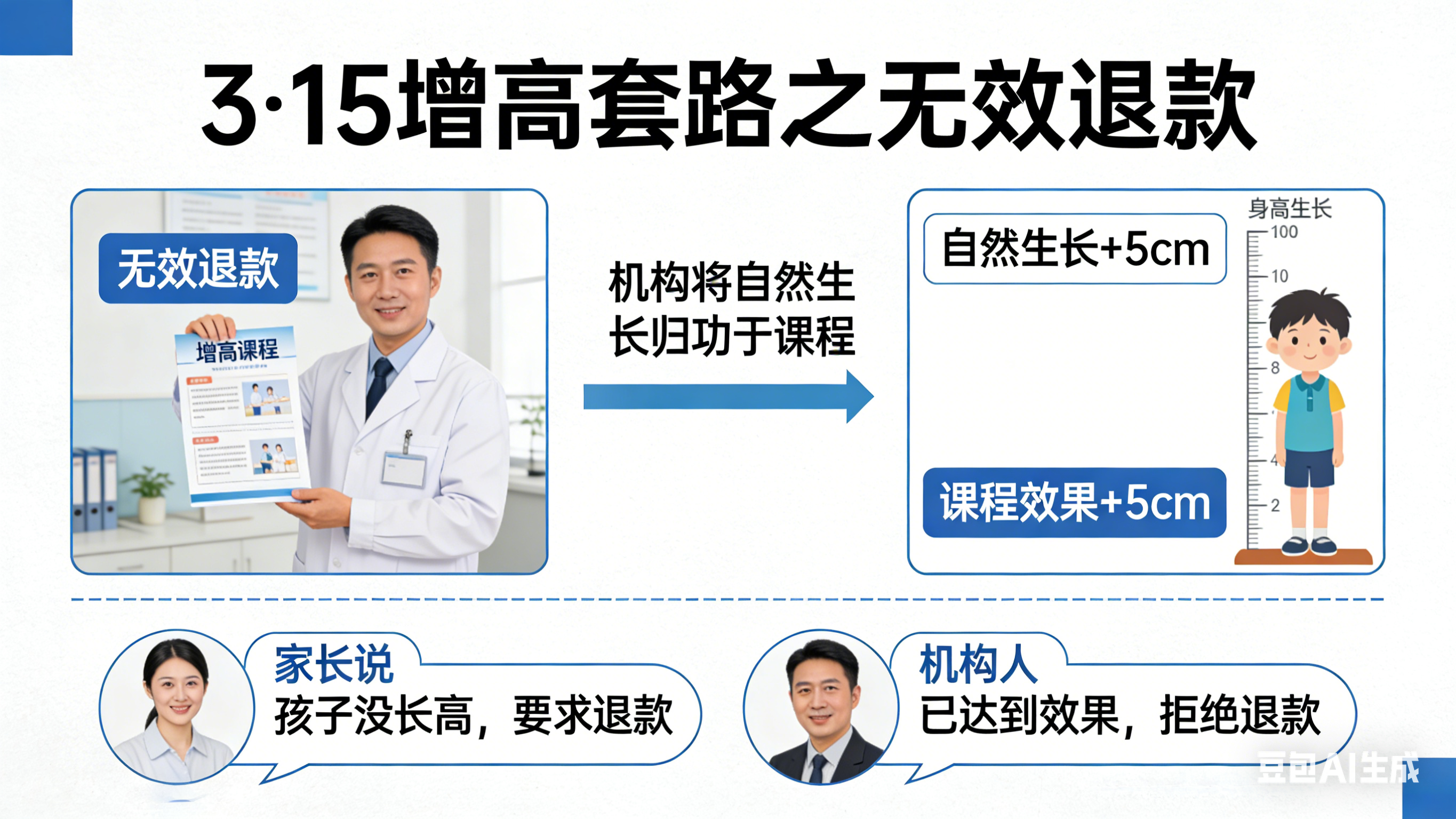 3·15的曝光,刺破了青少年增高行业的虚假面纱。那些打着“物理增高”“无效退款”旗号的谎言,最终都指向了一个共同的靶心——家长们对孩子无处安放的身高焦虑。
