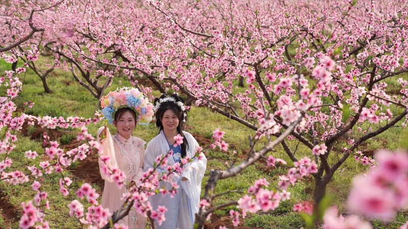 湖北枣阳:桃海漫卷七万亩 汉服霓裳舞春风