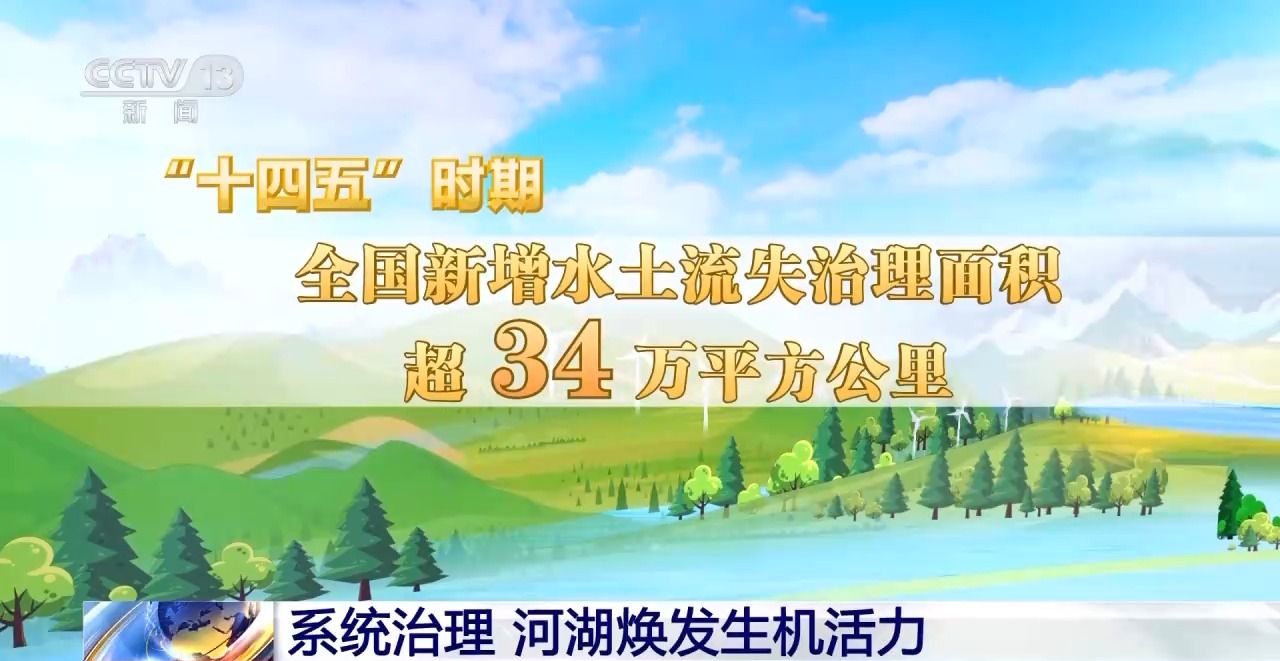 “十四五”时期全国新增水土流失治理面积超34万平方公里,全国水土保持率达到73.09%,水生态治理成效显著。