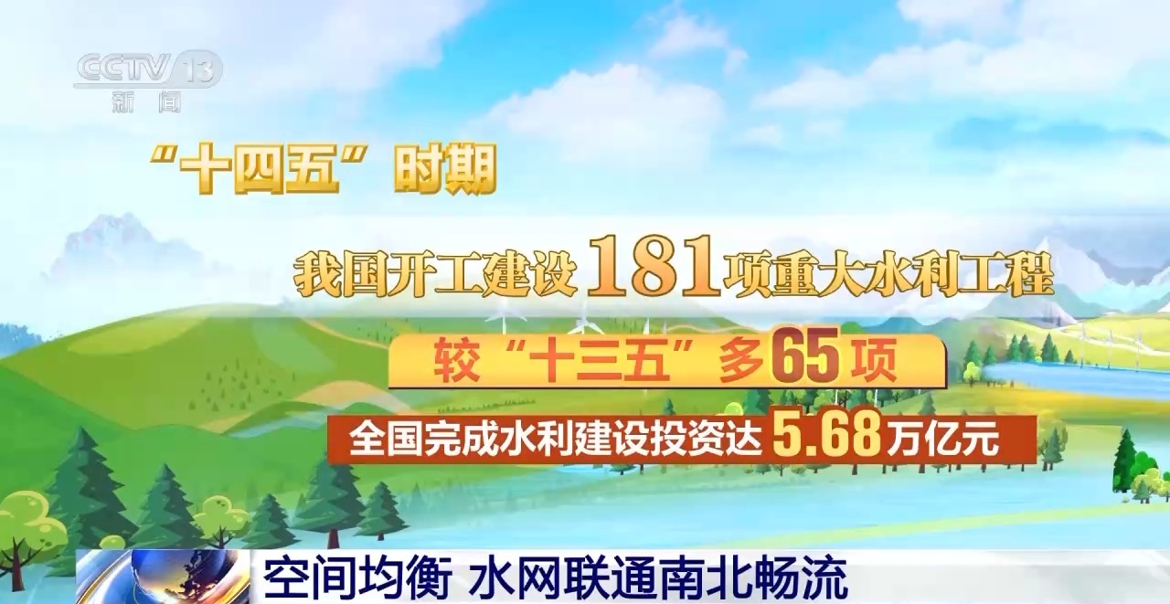 “十四五”时期我国开工建设181项重大水利工程,较“十三五”多65项,全国完成水利建设投资达5.68万亿元,2022年以来连续4年投资超1万亿元。
