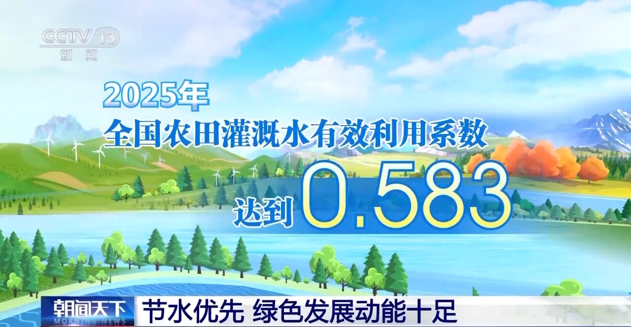 节水,是国家水网建设的重中之重。数据显示,2025年,全国农田灌溉水有效利用系数达到0.583,较“十三五”末的0.565大幅提高。全国万元国内生产总值用水量、万元工业增加值用水量较“十三五”末分别下降20%和25%以上,节水效能逐级跃升。
