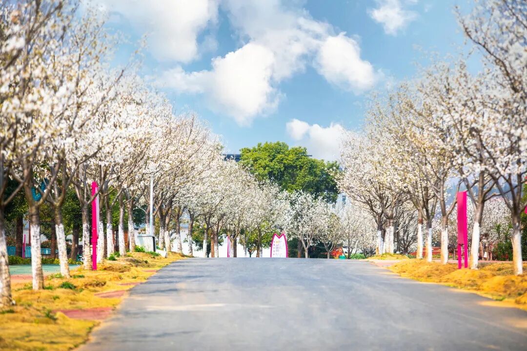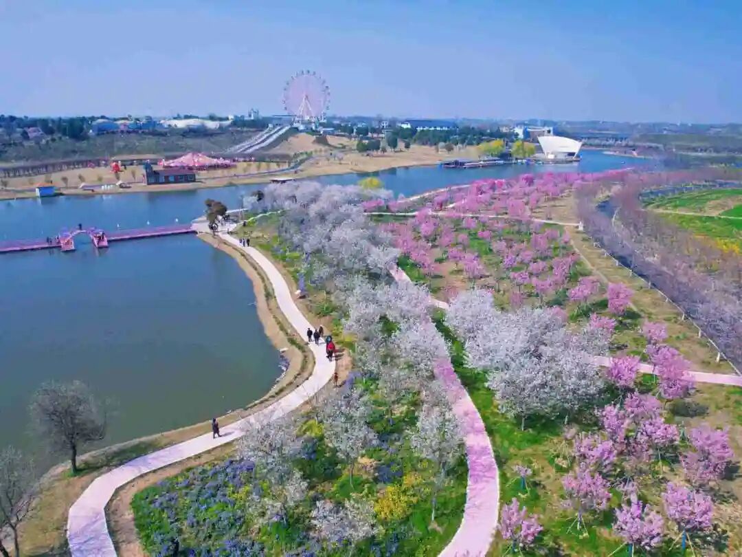 作为华中紫荆樱连片种植面积最大的樱花主题景区,3902亩的园区内凤凰河碧波荡漾,紫石河蜿蜒曲折。园区内樱花大道上落英缤纷,与四季花海的五彩斑斓相映成趣,植被覆盖率超80%的生态环境让这里宛如世外桃源。