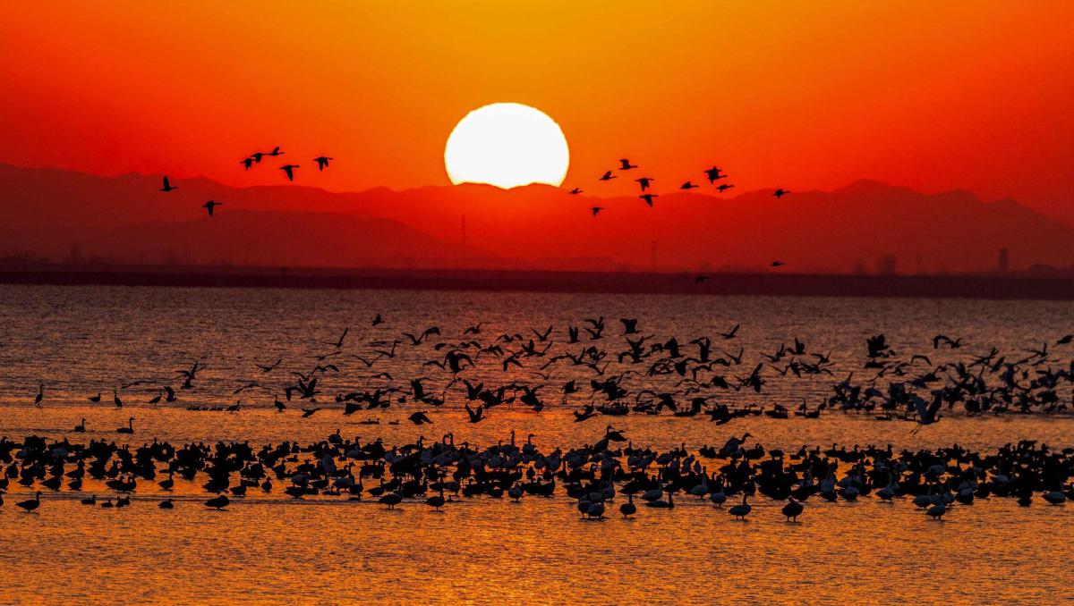 说起网湖的候鸟,张旻如数家珍。每年9月下旬至10月上旬,来自西伯利亚、蒙古高原、中国东北湿地的雁鸭类开始陆续抵达。接下来,白鹤、东方白鹳、天鹅等主力部队接踵而至,到11月底越冬种群基本集结完毕。