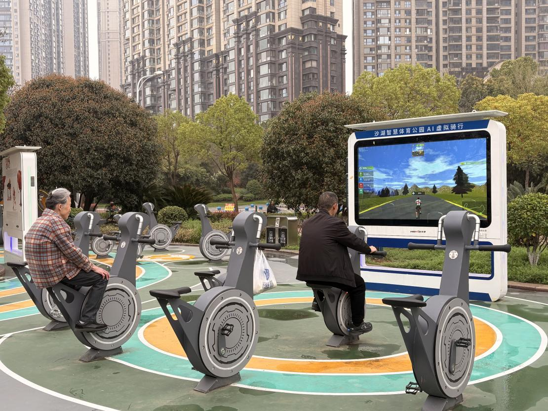 从AI虚拟骑行、AI竞速划船,到AI跳绳、AI八段锦,公园将体感识别、动态追踪、数据实时反馈等技术深度融入市民的日常锻炼中。运动不再凭感觉,而是有了看得见的数据、可量化的成效。