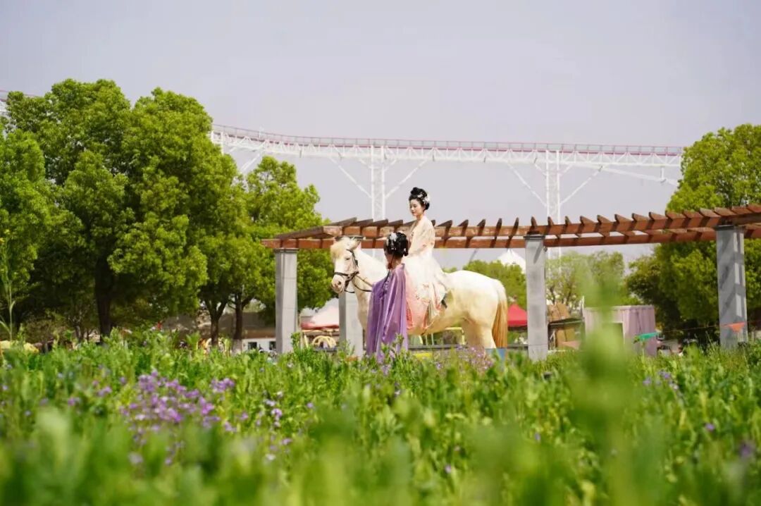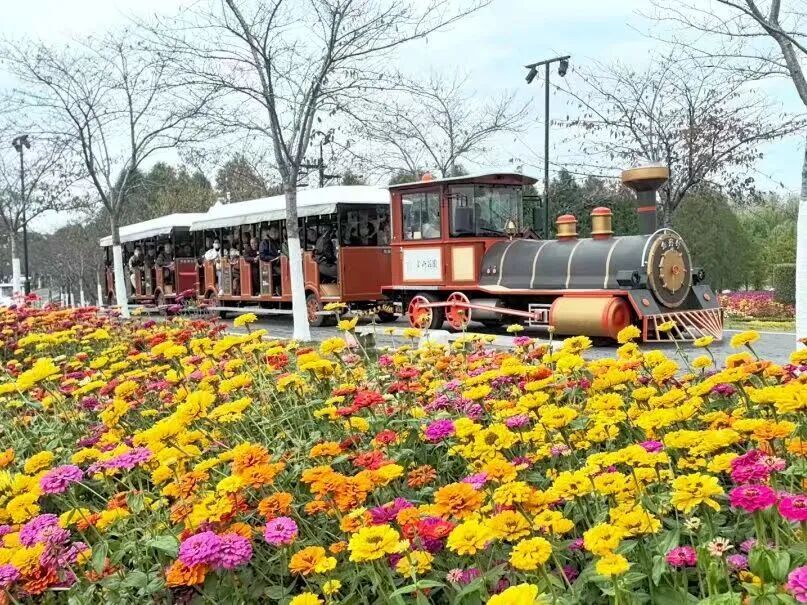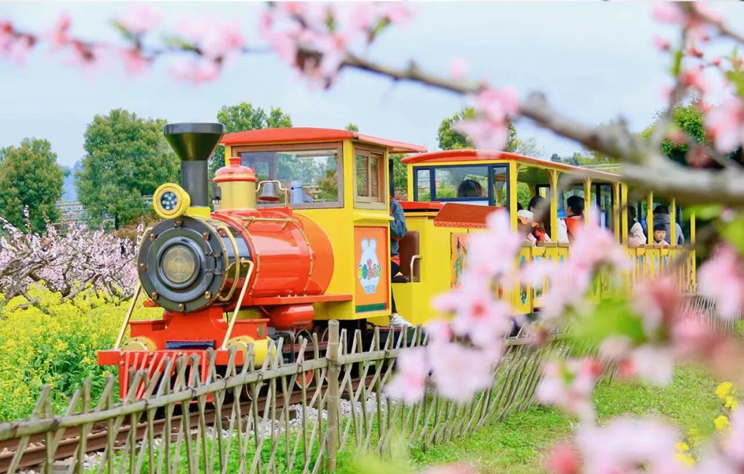 坐上花海小火车,穿行在郁金香、樱花之间,或是在花间悠闲骑马,一路繁花相伴,伸手就能触到飘落的花瓣,惬意又治愈。