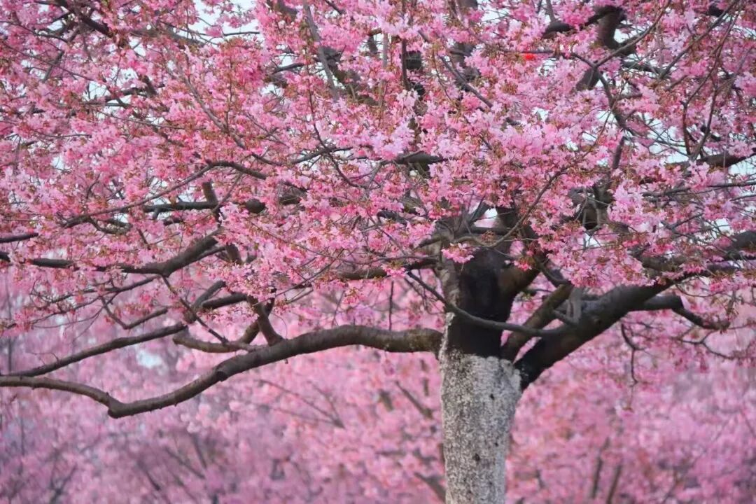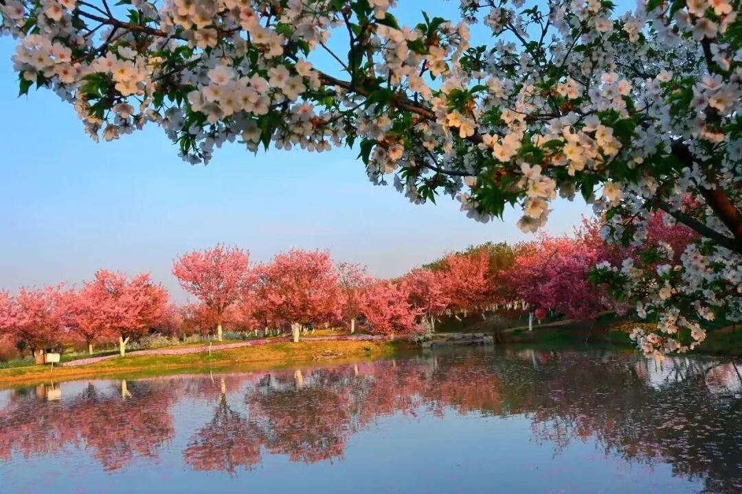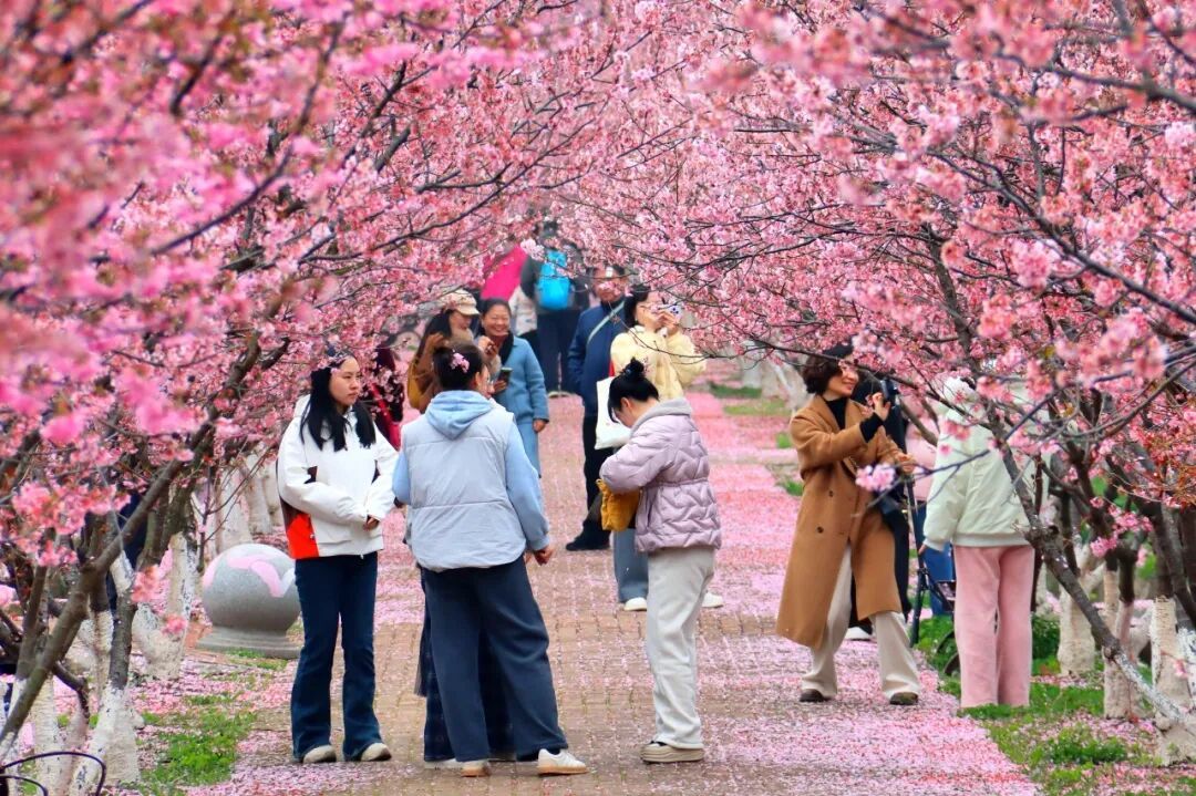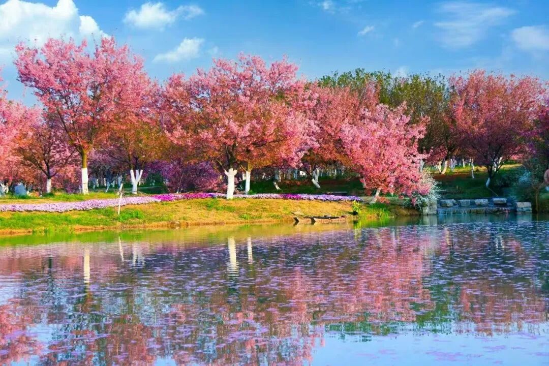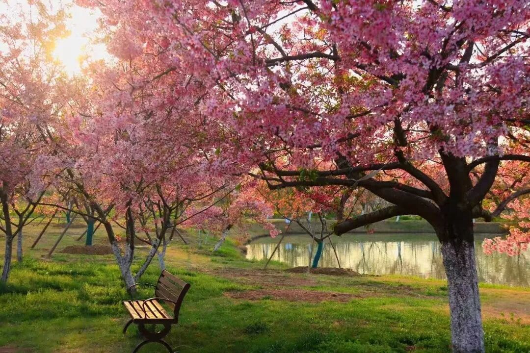 樱花盛宴:千亩樱林、十万余株,涵盖8大品系12个品种(香水樱、小牡丹樱、粉红佳人樱等),2月下旬至4月上旬错峰绽放;十里樱花长廊形成拱形花道,落英铺径,宛如偶像剧场景。