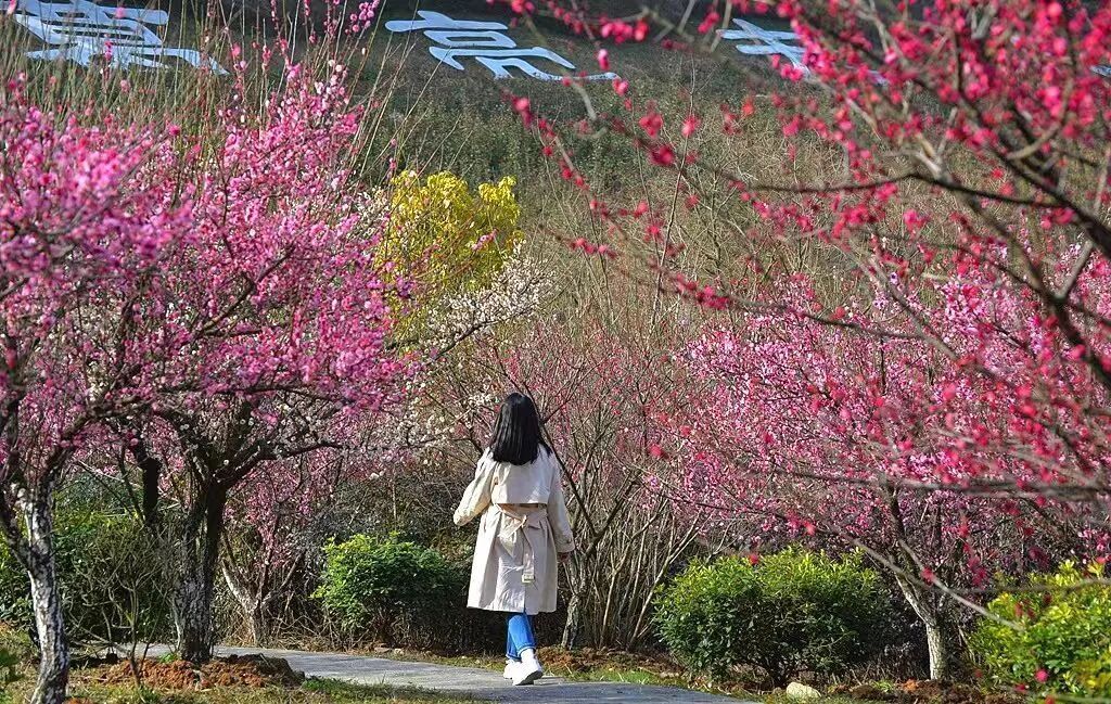 沿着花间小道慢慢走,一步一景。梅花余韵还在,春花次第绽放,这里的春日既有山野的辽阔,又有花海的精致。