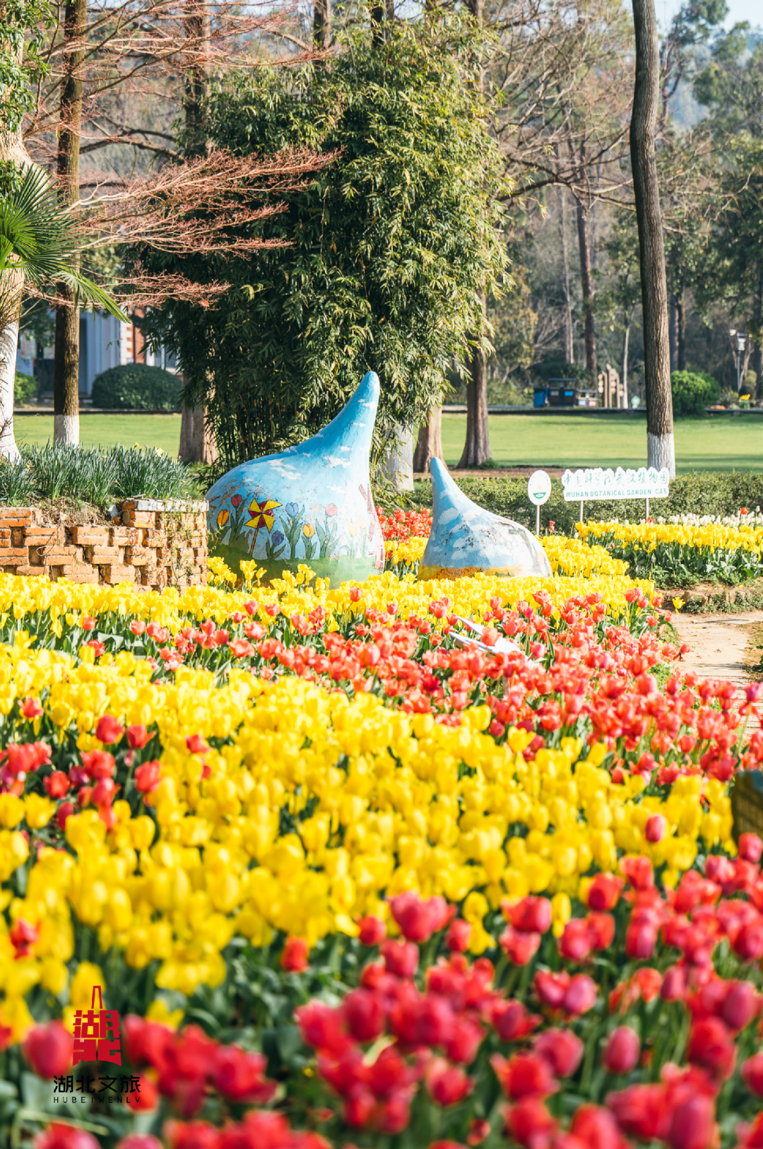 走进武汉植物园,50万株、近百个品种的郁金香正泼洒出春日最绚烂的色彩。