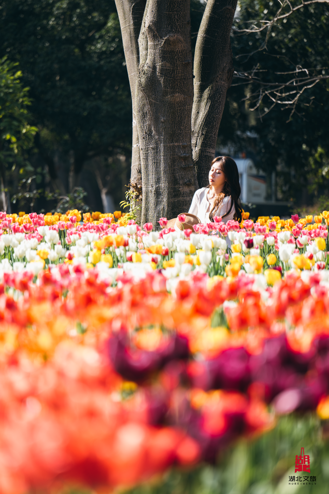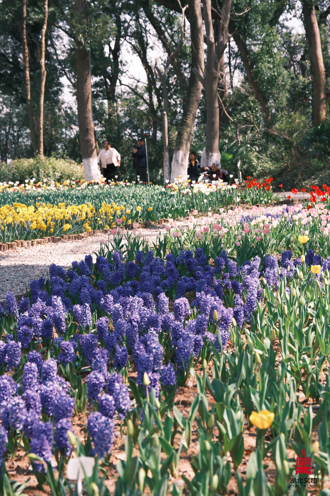50万株郁金香花海刷屏:作为武汉老牌郁金香花展举办地,春季打造马卡龙色系郁金香花海,配色清新治愈,搭配林间古木、湖畔草坪,氛围感拉满。