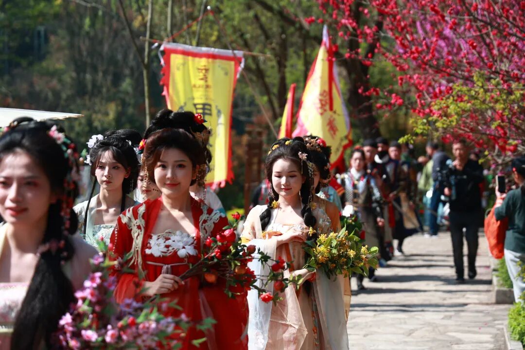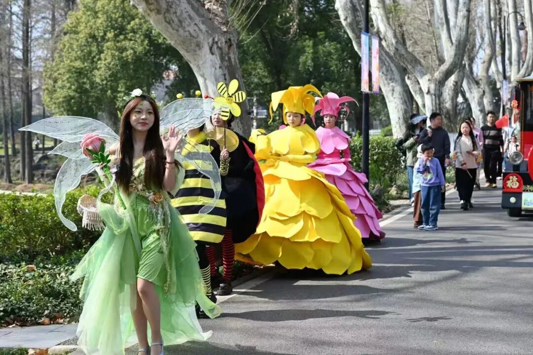 今年春天,景区重磅开启国潮文化季,十二花神将穿行于花海之间,与游客亲切互动、合影留念。