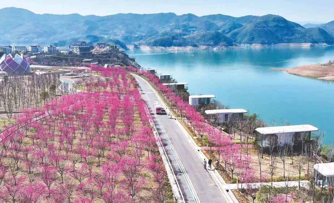 阳春三月,山樱次第绽放,红梅、樱花、玉兰等相继开放,色彩斑斓的花朵在碧水蓝天的映衬下格外好看。