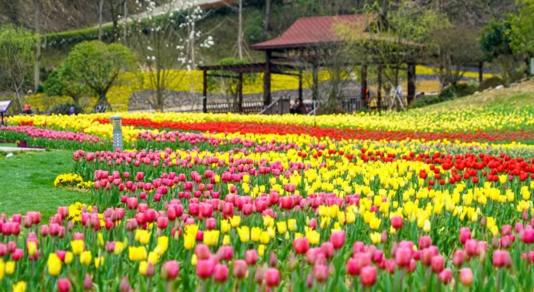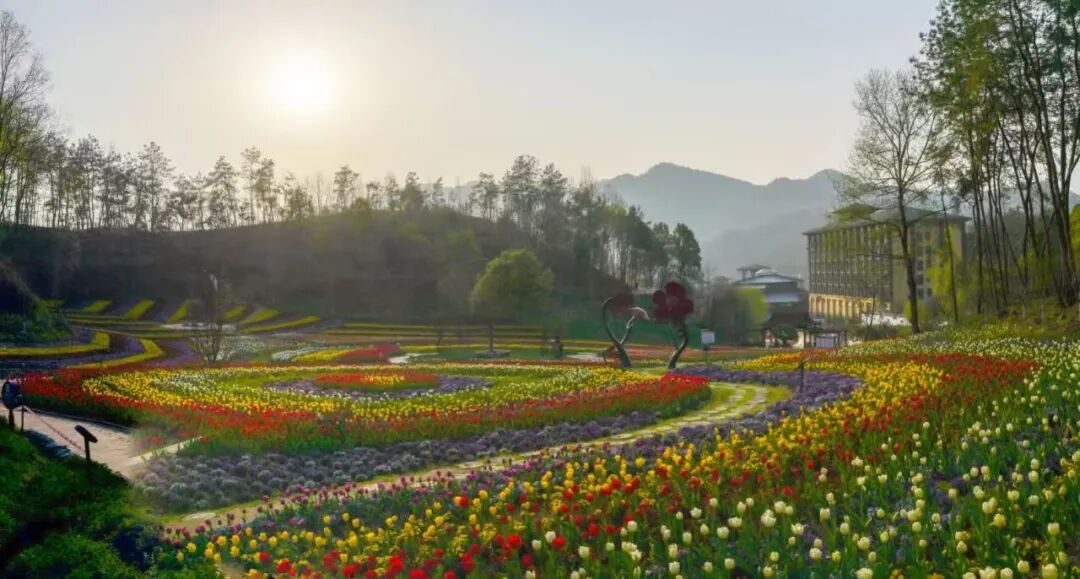 花海规模:3月中旬至4月初,百万株郁金香成海,搭配山野梅花余韵,春日层次感强;依托山地地形,视野开阔、野趣足。