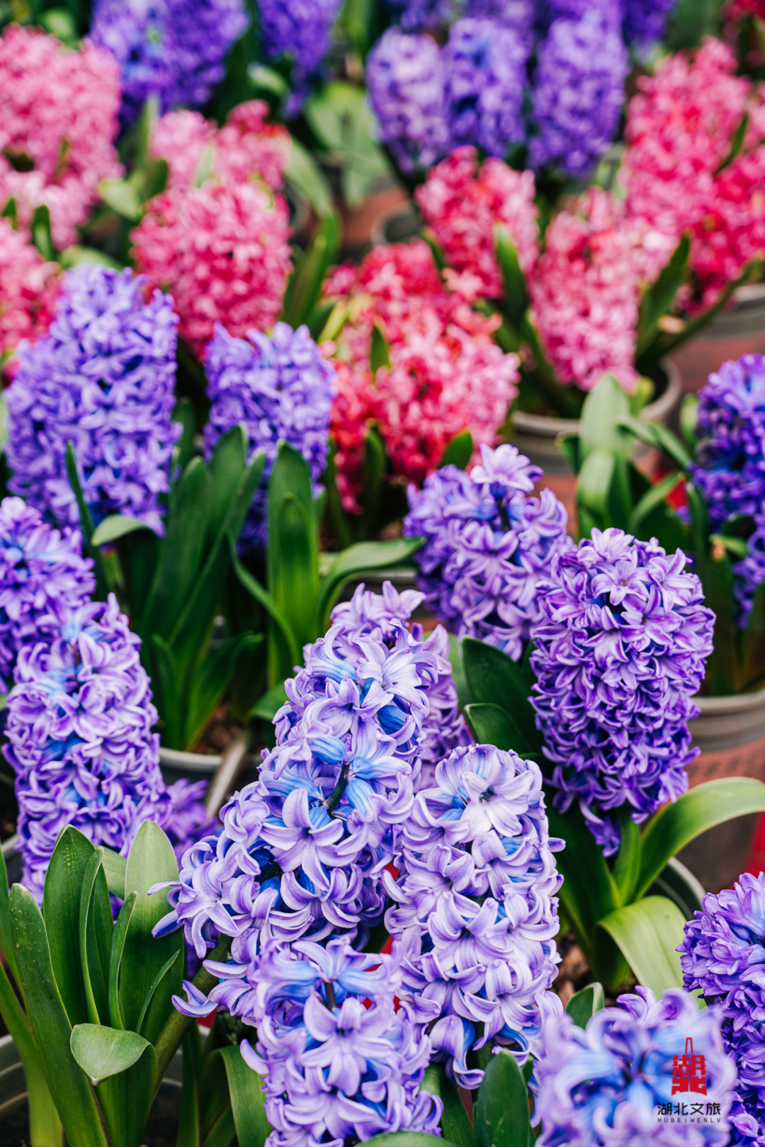 红的似火、粉的如霞、黄的赛金、紫的高贵,一块块、一片片,整齐地铺展开来,化身成一片流动的“彩虹海”。
