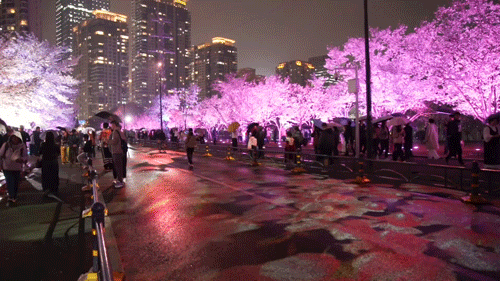 主干道循环播放樱花主题光影秀