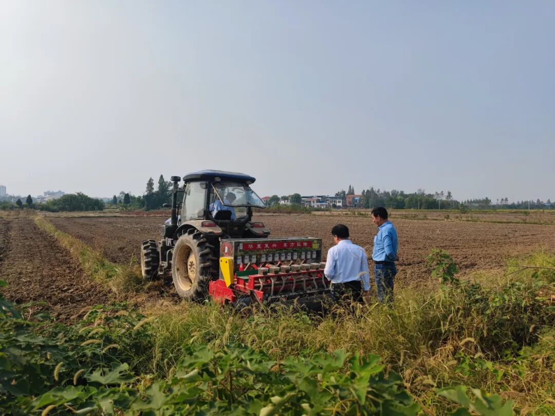 在农场暗化棚内,一台50kW的暖风机稳定运行,智能育秧控制系统对棚内环境进行调控。棚内温度控制在25-30℃,以满足暗化出苗所需的温度条件,秧苗出苗整齐一致,长势均匀,让“靠天吃饭”的传统育秧模式成为历史。农场结合水稻生长规律,合理安排播种时间,通过适期播种,帮助中稻和再生稻更好地利用光热资源,延长有效生育期,为全年粮食生产争取主动。