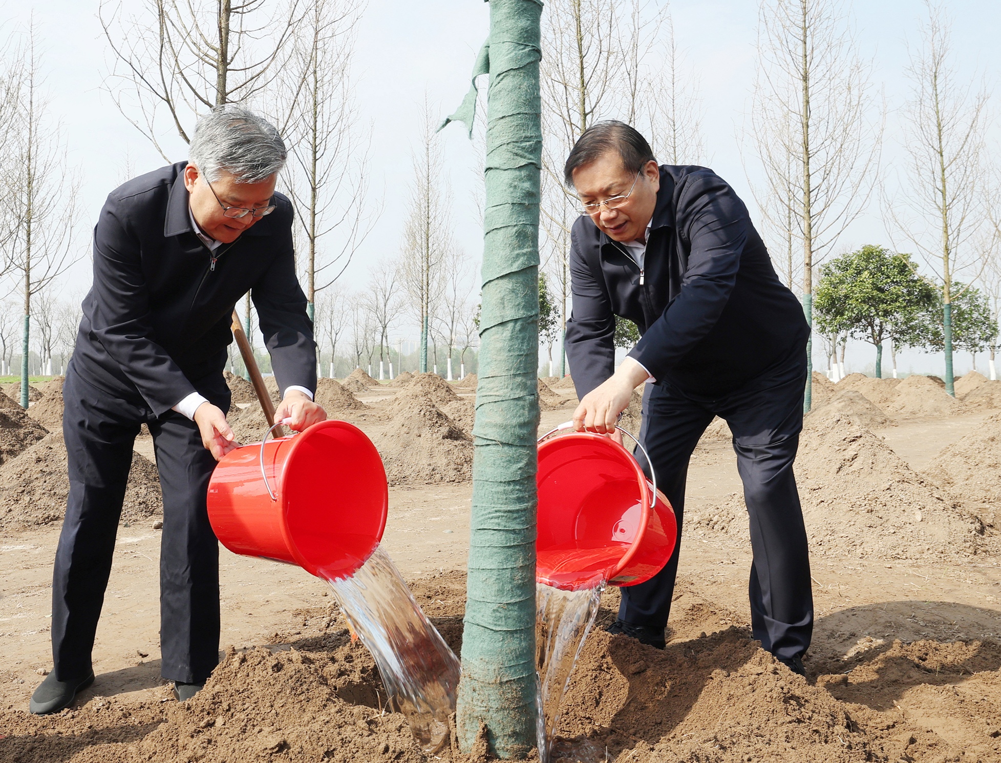 植树点位于青山江滩湿地综合整治工程一期,是武汉百里长江生态廊道的重要组成部分。省领导与青年志愿者、学生代表、机关干部一起,挥锹铲土、培土围堰、提水浇灌……大家合力种下一株株水杉、香橼、梅花等苗木。春风拂面,新栽树木迎风挺立、生机勃勃,为长江岸线再添盎然绿意。