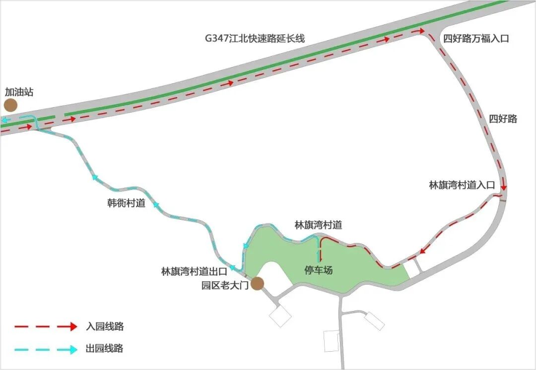 入园路线:G347右侧→四好路→韩弄村乡道→室外停车场