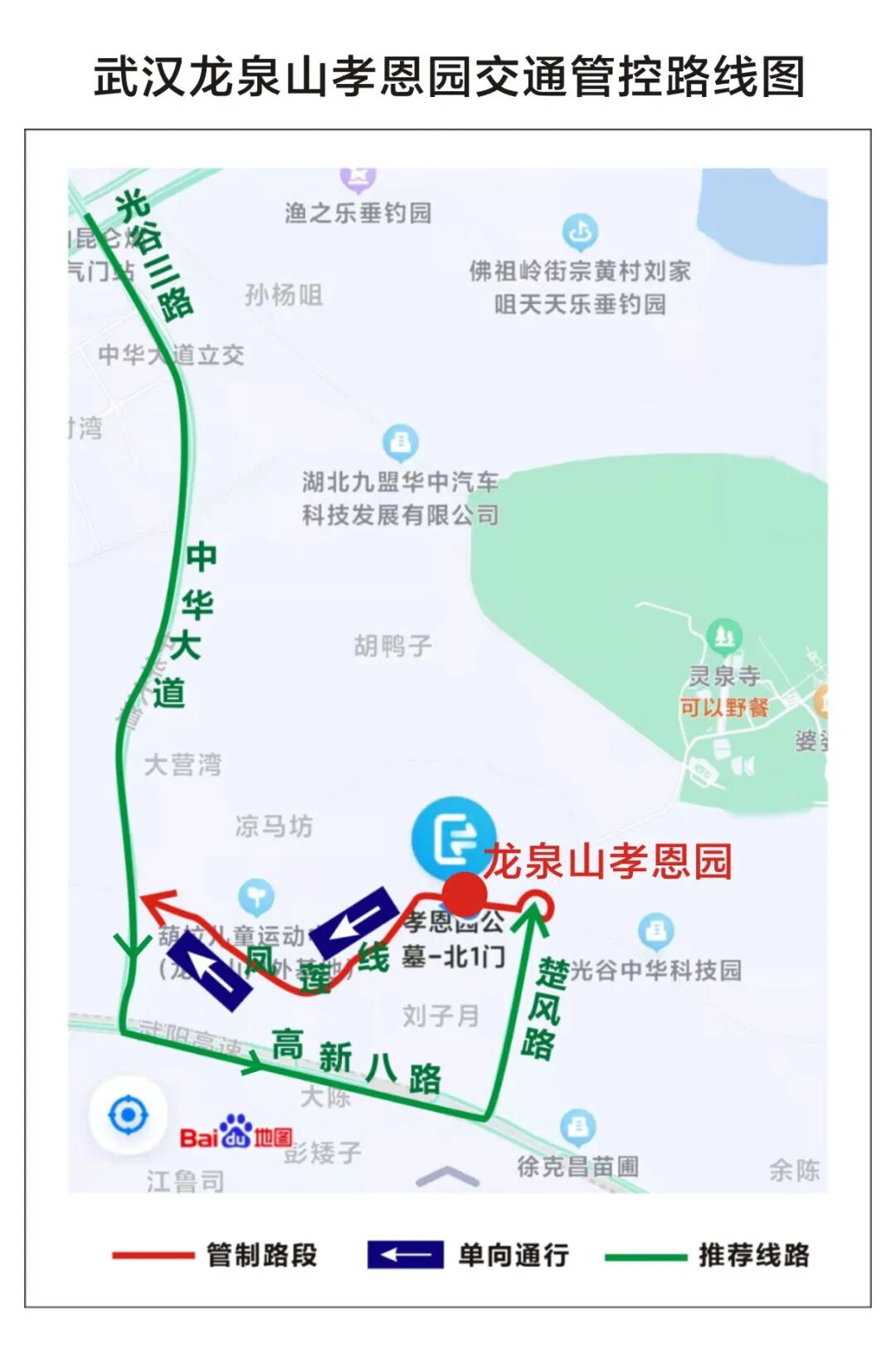 祭扫高峰行驶路线:光谷三路——中华大道——高新八路——凤莲线。