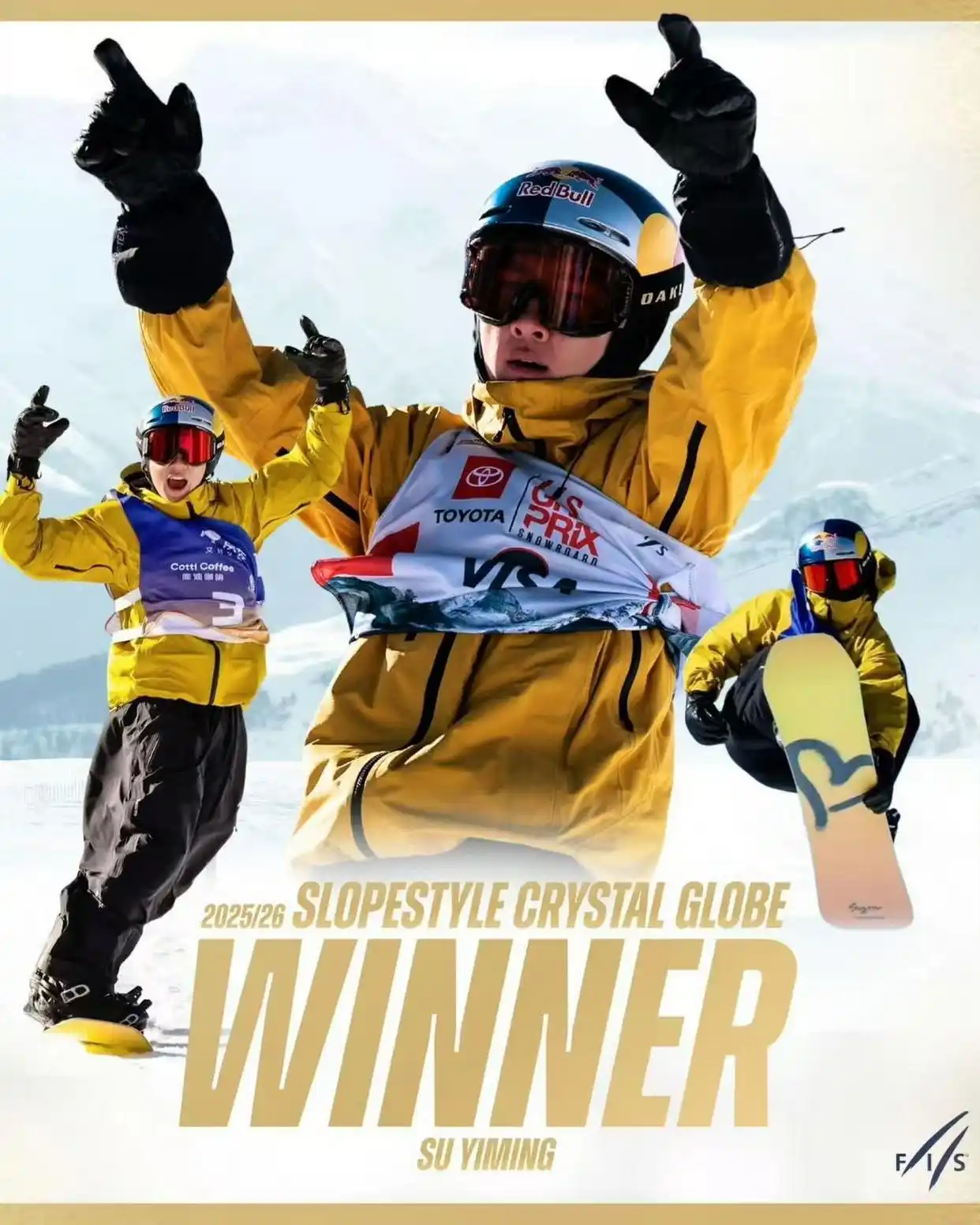 北京时间3月28日,国际雪联宣布苏翊鸣斩获2025至2026赛季国际雪联单板滑雪男子坡面障碍技巧世界杯赛季总冠军。