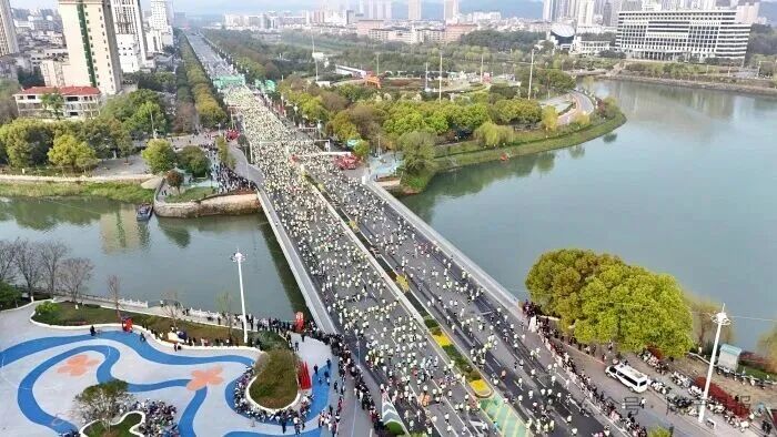 赛道如画,是跑友们对咸马最直观的感受。42.195公里的赛道,犹如一条串起城市精华的项链。
