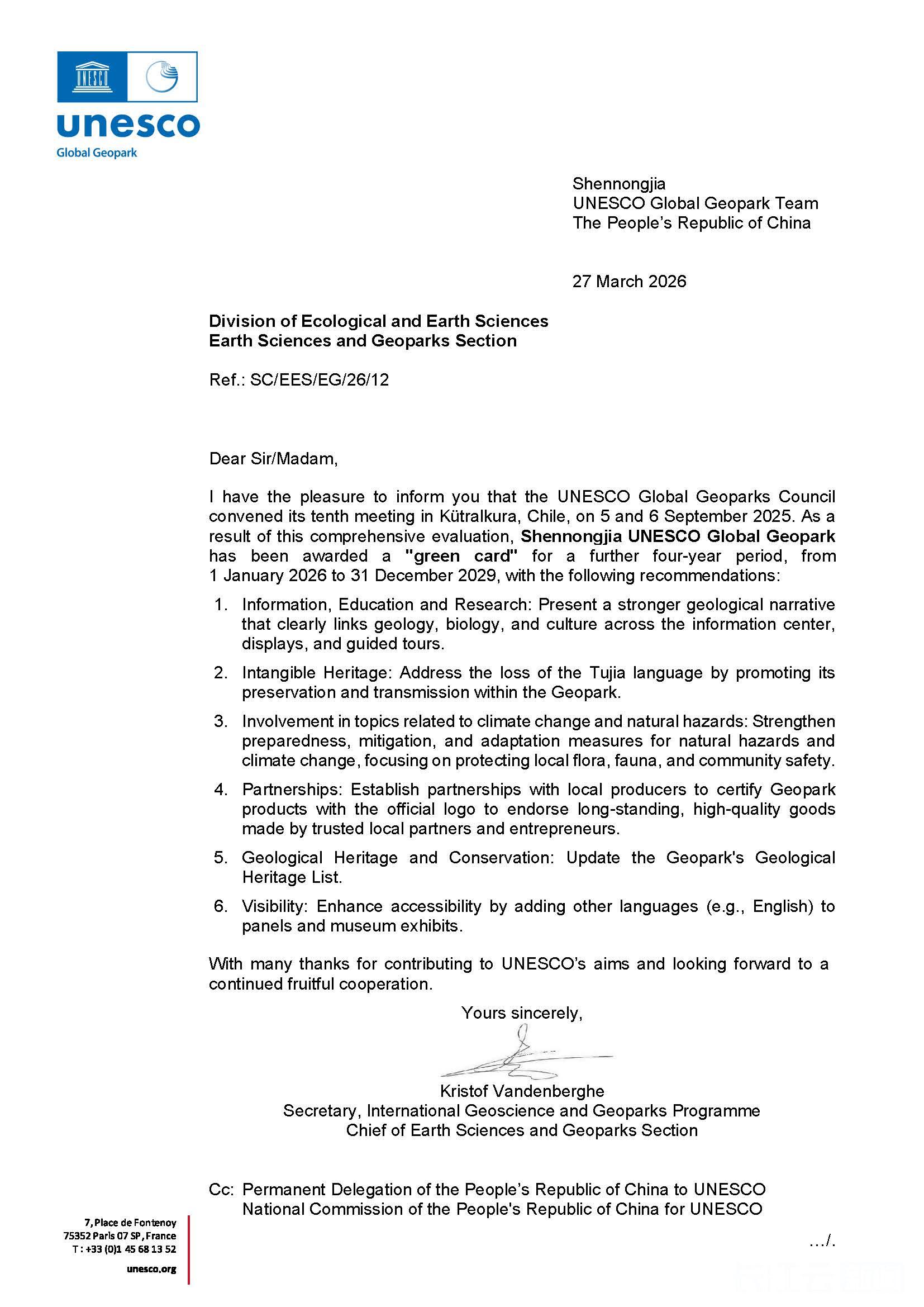 世界地质公园是联合国教科文组织三大旗舰品牌之一,每四年需接受一次全面评估,内容涉及地质遗迹保护、科普教育、社区可持续发展等诸多方面,评估结果分为“绿牌”(通过)、“黄牌”(需整改)和“红牌”(除名)。此次“绿牌”的获得,是国际社会对神农架过去四年在保护与管理方面卓越工作的权威认可。