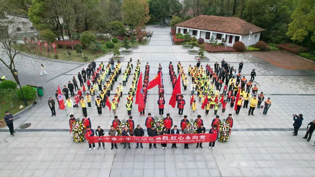 鄂中革命烈士纪念馆前庄严肃穆,纪念碑静静矗立,镌刻着革命先烈为民族解放、人民幸福作出的不朽功勋,也承载着后人对英烈的无限敬仰。全体参与人员肃立致敬,奏唱《中华人民共和国国歌》,激昂的旋律回荡在纪念碑上空,少先队代表,深情朗诵缅怀先烈主题诗词,诉说着对革命先烈的追思与敬仰。《我们是共产主义接班人》的嘹亮歌声响起,稚嫩而坚定的嗓音,传递出新时代青少年传承红色基因的坚定决心。