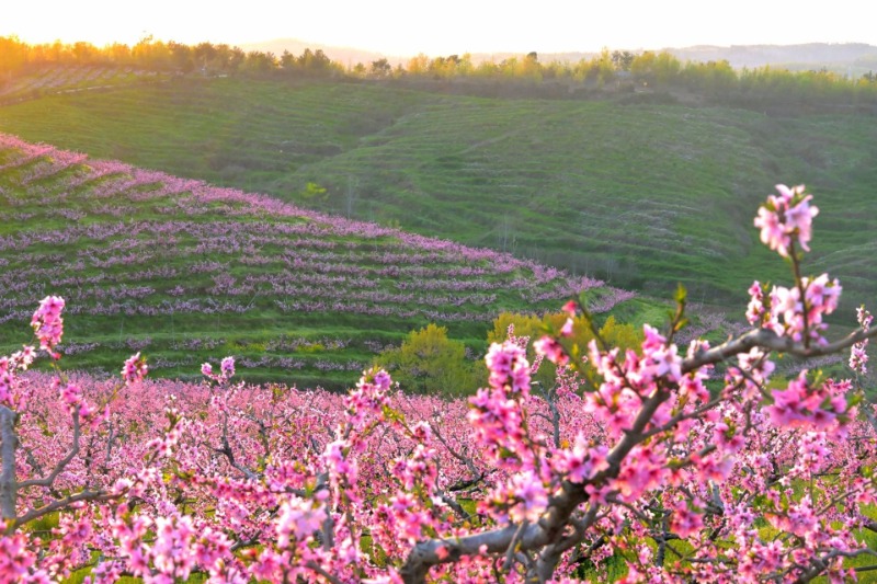 春风和暖,桃花争艳。连日来,湖北枣阳35万亩桃花竞相绽放,粉红花海把广袤乡野装扮得分外妖娆,呈现生机勃勃的春日画卷。
