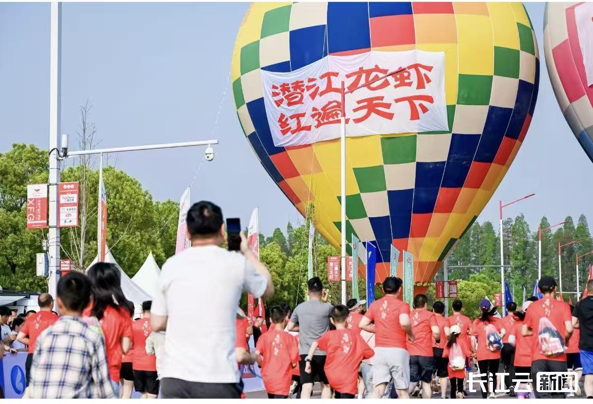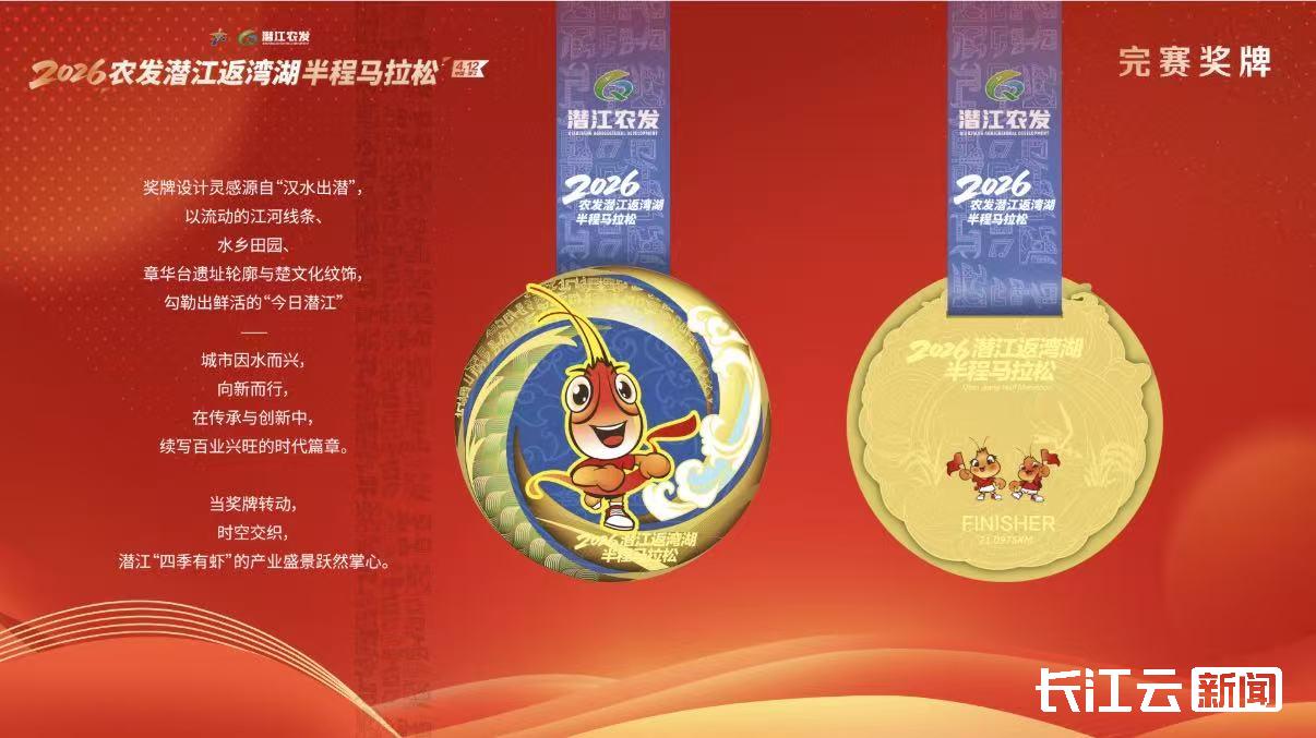 在文化赋能方面,赛事将楚韵文化与虾乡风情贯穿全程,奖牌融入水乡田园、章华台、楚文化纹饰及Q萌龙虾等专属元素,完赛包搭配本土特色小吃,兼具纪念与实用价值,参赛服上一句“潜江龙虾 红遍天下”,道出了这座城市的味觉自信。