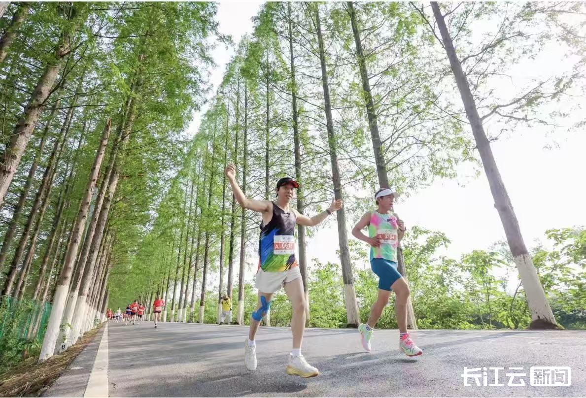 比赛在返湾湖国家湿地公园进行,这里是古云梦泽的珍贵遗存,湿地率高达96%,跑者将穿行于湖岸线、水杉廊道与春日花海之间,眼前是碧波荡漾,抬头见白鹭翩飞,堪称一场“富氧疗愈之旅”。