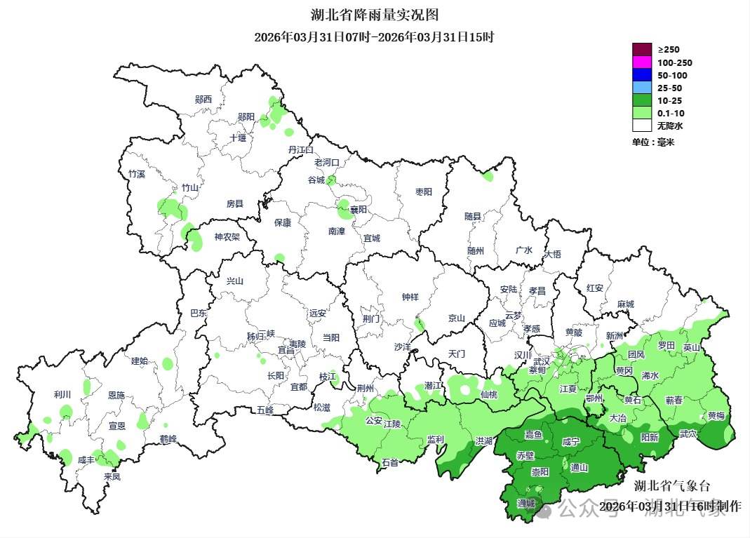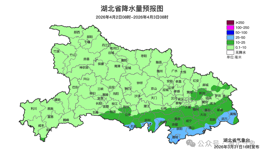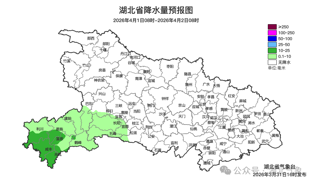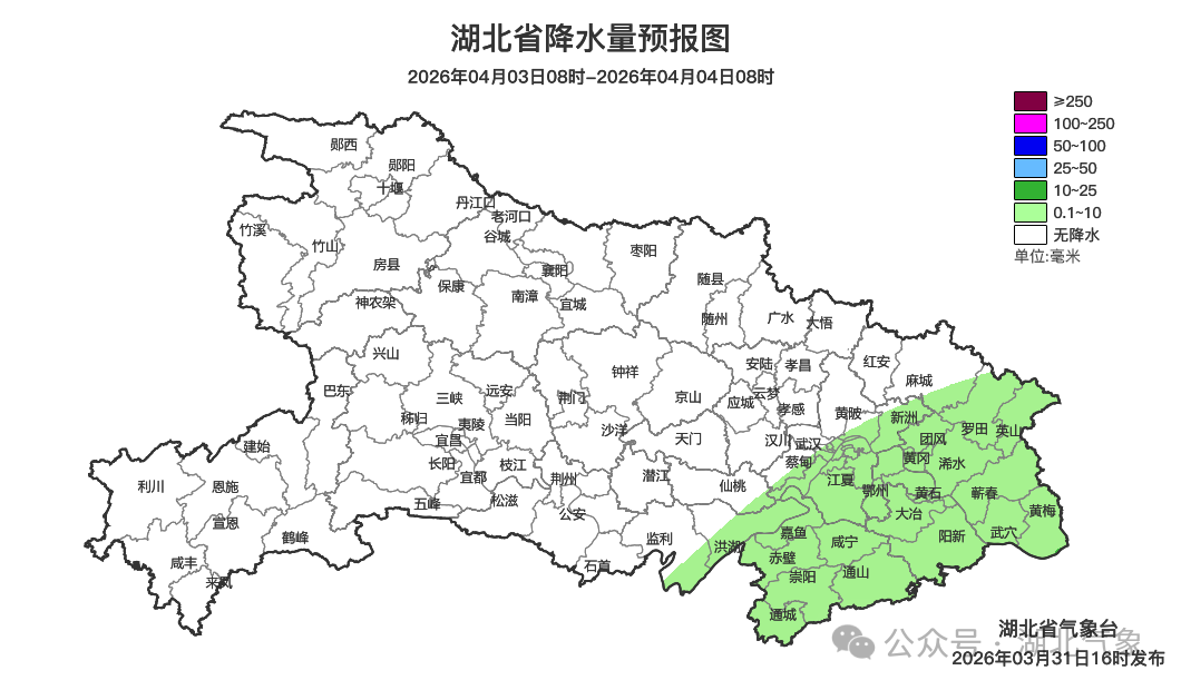 预报来源:湖北省气象台2026年3月31日16时预报